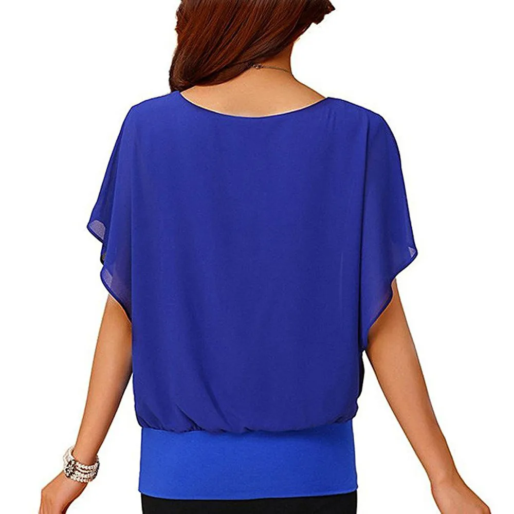 Женская Свободная Повседневная шифоновая блузка с коротким рукавом и рукавом летучая мышь