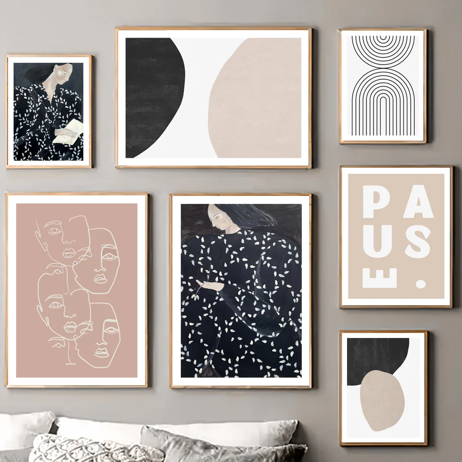 Настенная живопись на холсте, абстрактная линия, кривая, геометрический, цветной блок, скандинавские плакаты и принты, настенные картины для декора гостиной