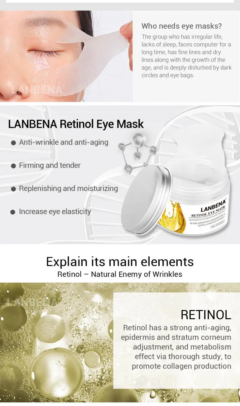 LANBENA маски для глаз удобные увлажняющие патчи для глаз Сыворотка против старения удаление темных кругов подтягивание кожи глаз