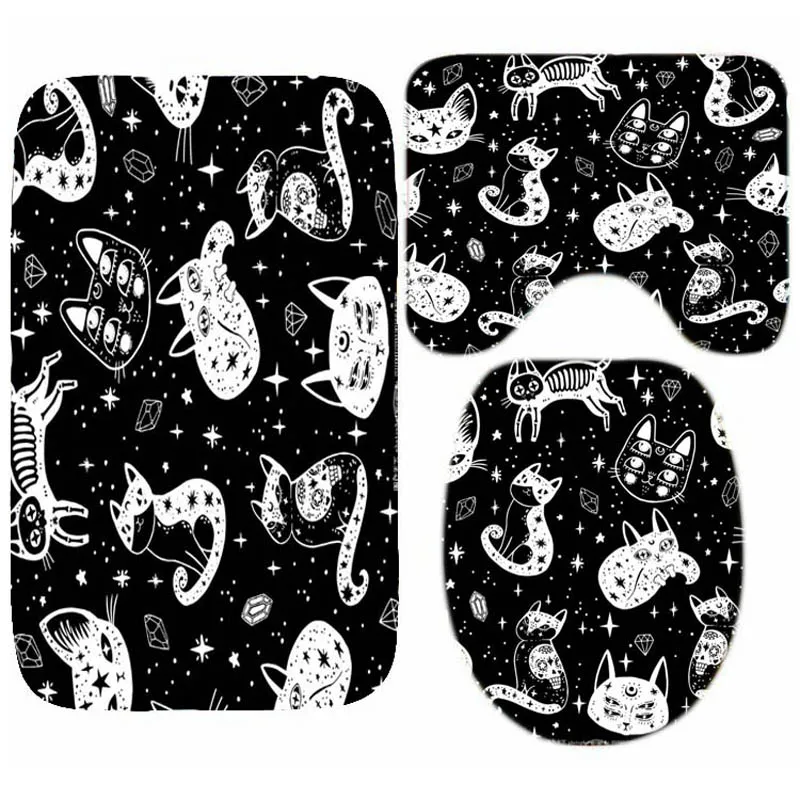 3 шт. Черный Белый Готический Ведьма кошка коврик для ванной набор для ванной скелет, череп на хэллоуин кошки ванная комната Ковер Крышка для унитаза