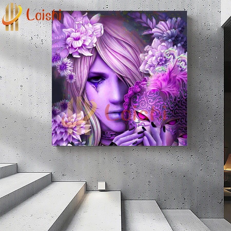 Алмазная 3D картина сделай сам, фантазия, фиолетовая маска, женское искусство, полноразмерная круглая квадратная картина из страз, мозаика, подарок, украшение для стен дома