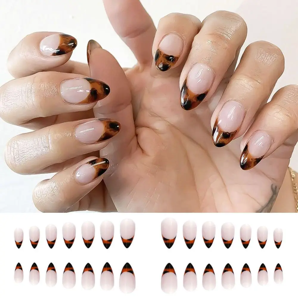 24 шт.корт. Искусственные ногти с клеем карамельный удлиненный параметр модный маникюрный пластырь накладные ногти для девочек