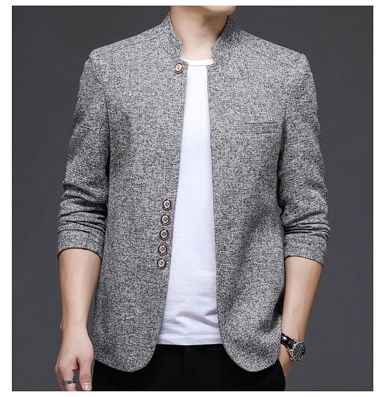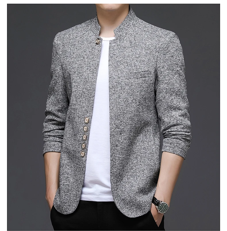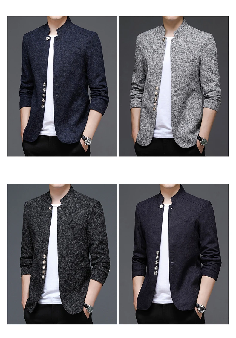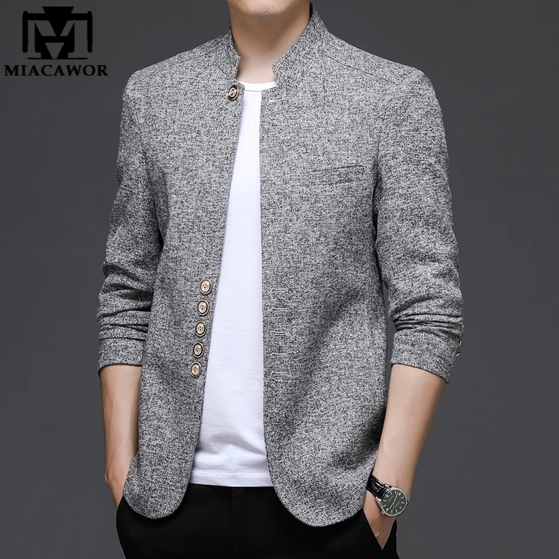 Куртка мужская однотонная с воротником-стойкой, повседневная приталенная, пальто, весна-осень, J698