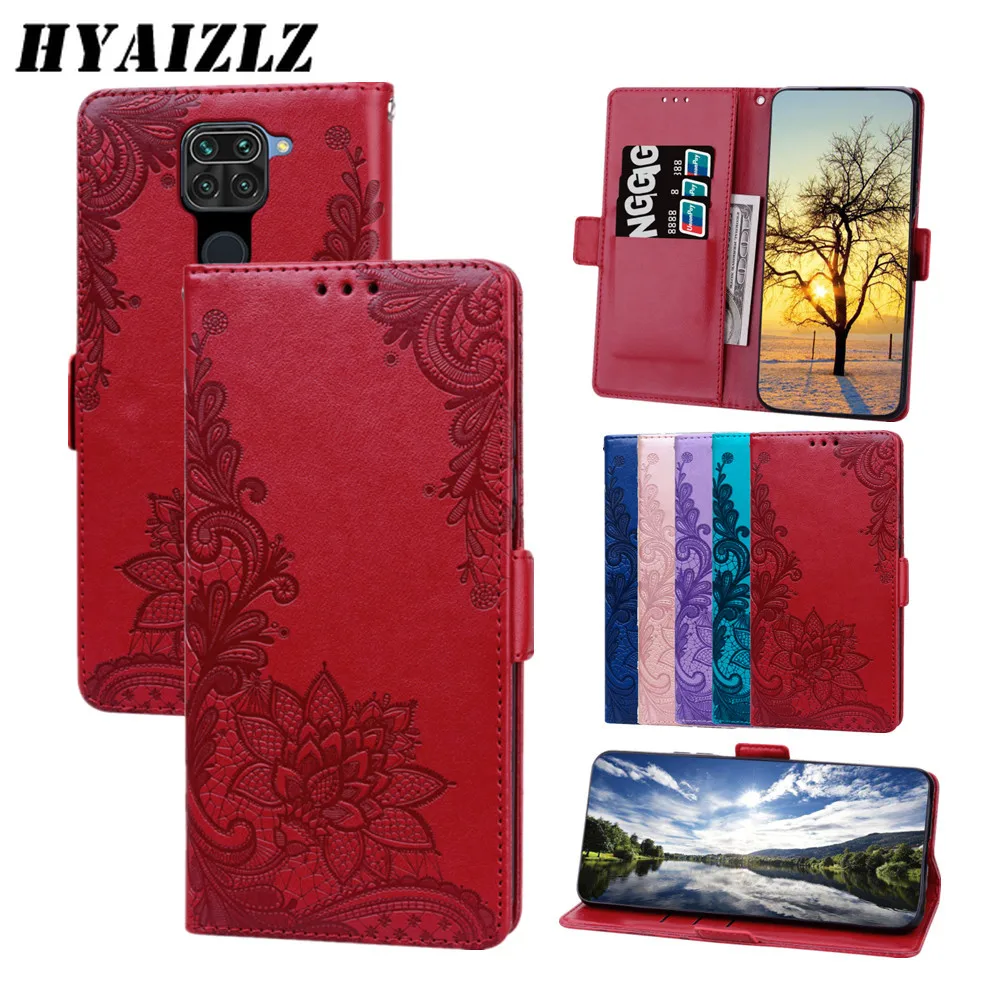 HYAIZLZ Чехол-книжка из искусственной кожи с кружевом и цветочным рисунком для Redmi Note 9, Стильный чехол-книжка Redmi 10x4g, чехол для телефона, противоударный защитный чехол с отделением для карт и подставкой