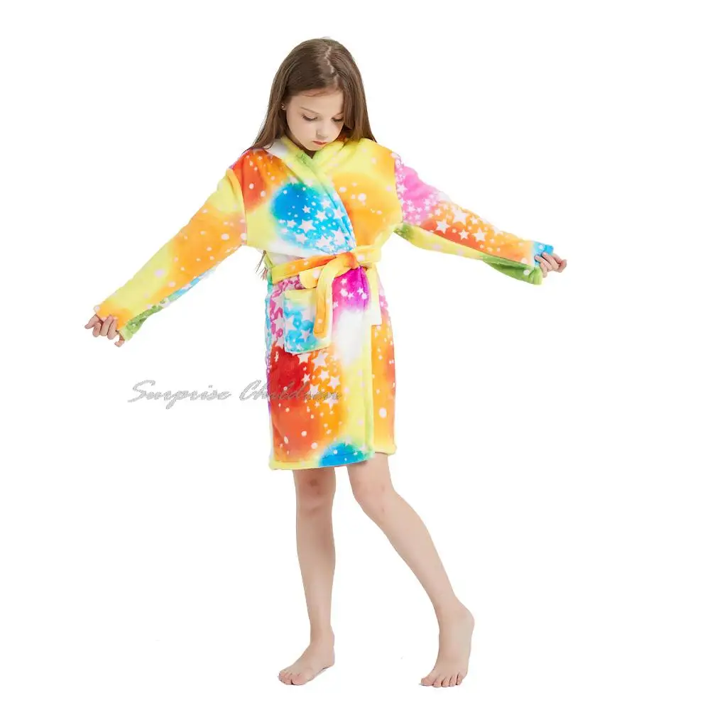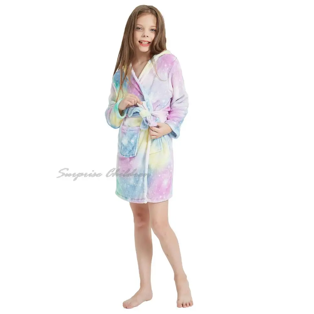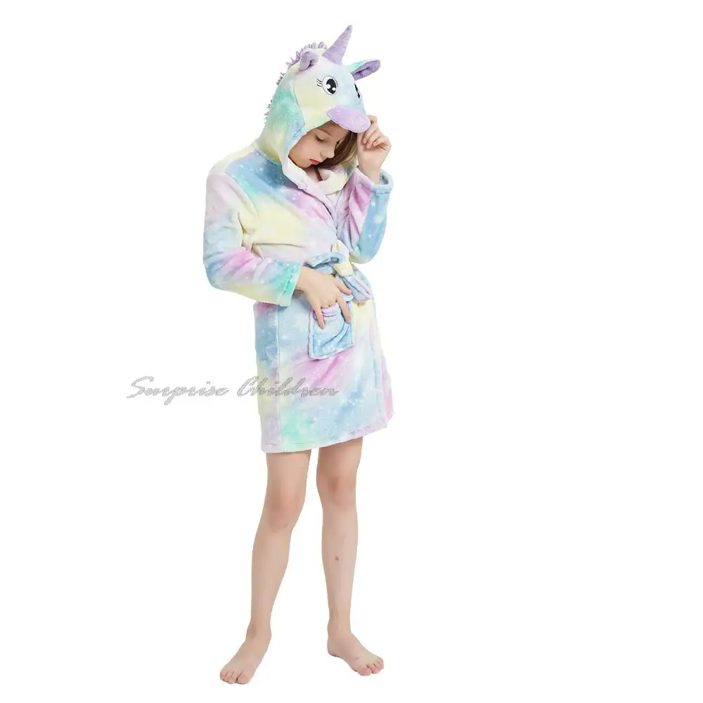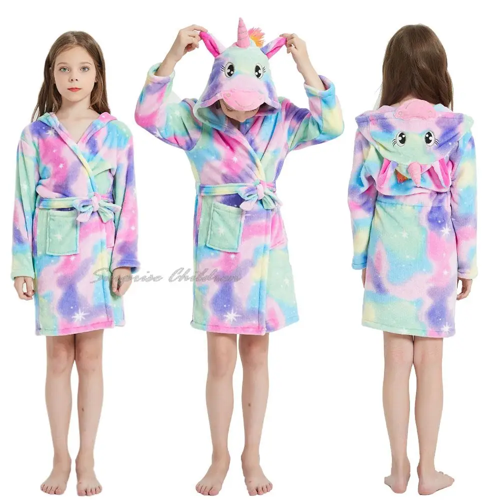 Банный халат детский, фланелевый, с единорогом, для мальчиков и девочек
