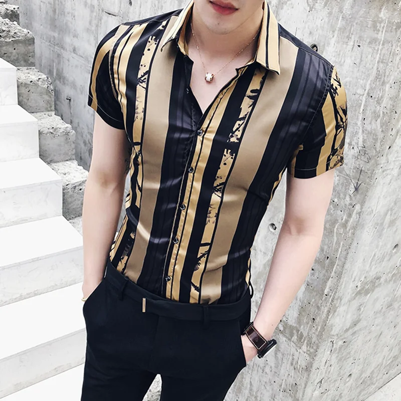 Рубашка мужская, летняя, с коротким рукавом, золотая, черная, 2018