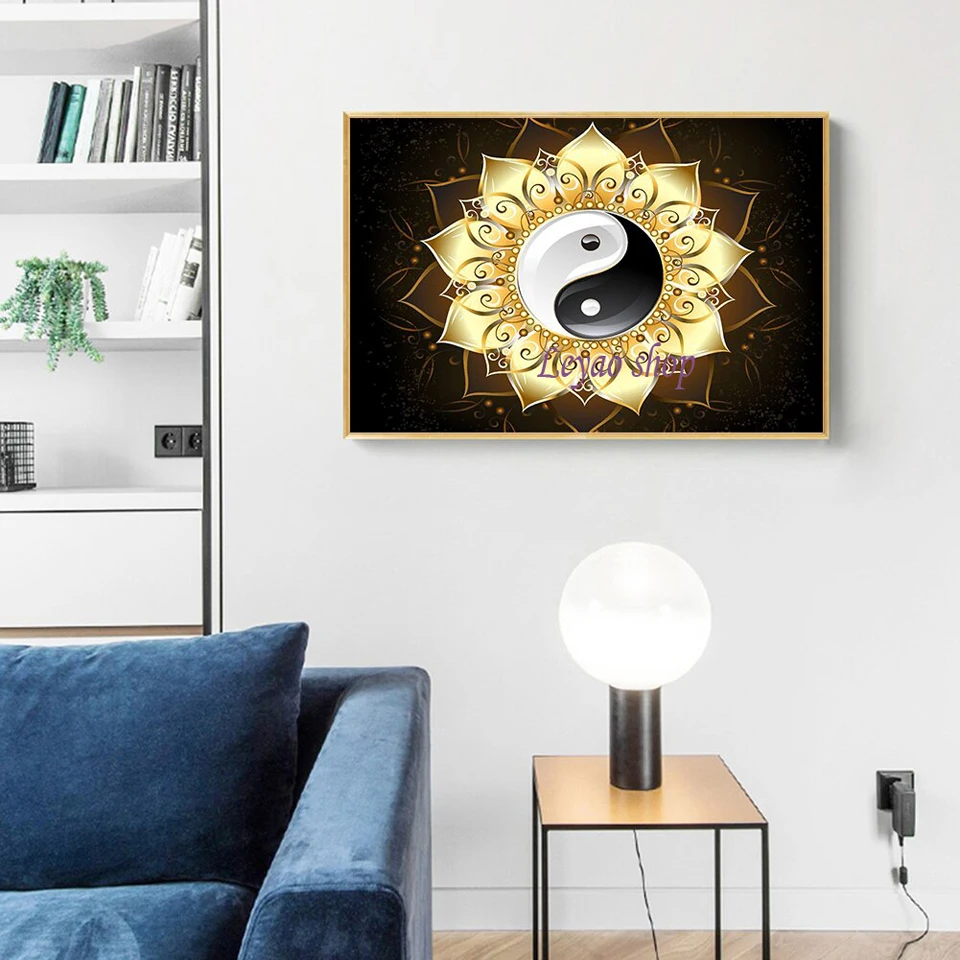 Полноразмерная Алмазная 5D картина сделай сам Инь Янь Багуа схема Мандала Цветок 3D вышивка крестиком Картина декор