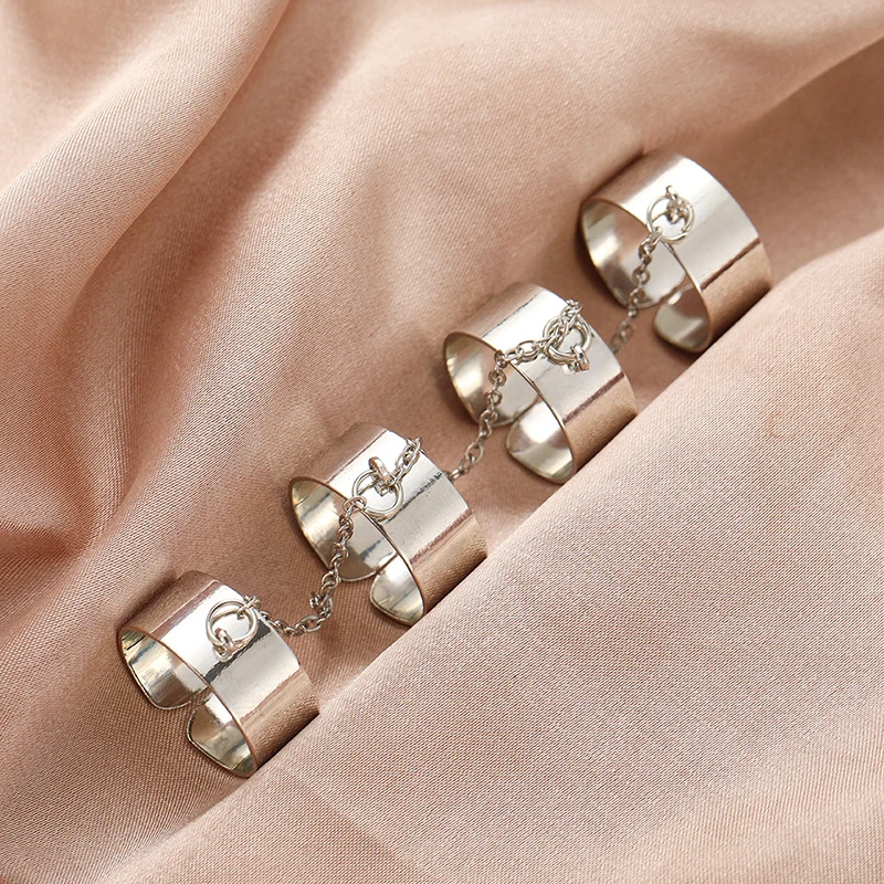 Sindlan 4 шт. Панк Серебряный цвет цепь кольца для женщин простой х...
