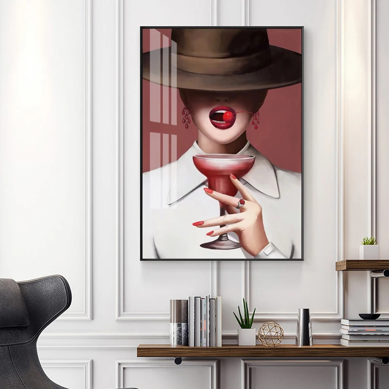 Модная женская холщовая Настенная картина с шапкой, современное платье, настенное украшение, холщовые принты с красными губами, стильная женская картина на стену