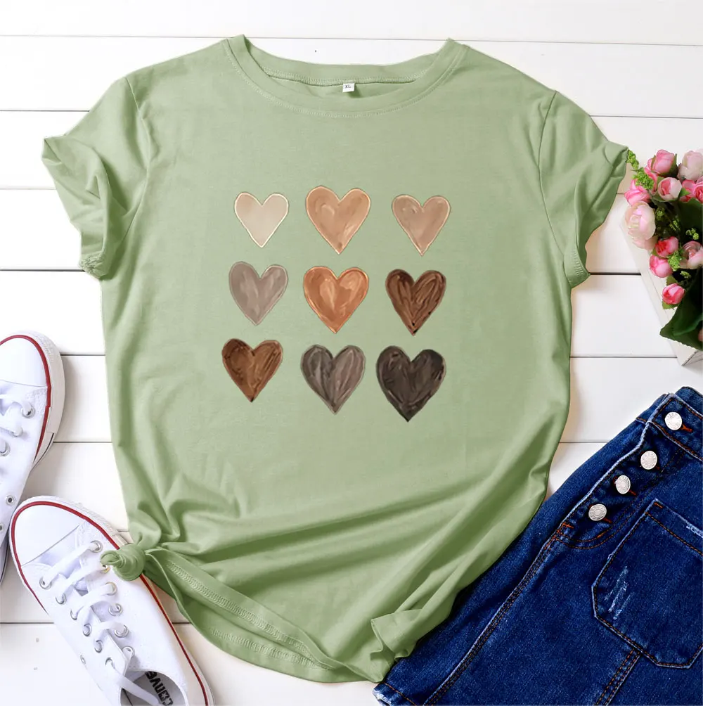 Женская летняя футболка с круглым вырезом, коротким рукавом и принтом в виде сердечек