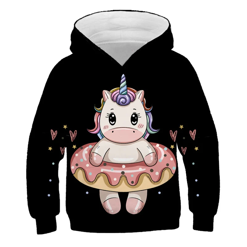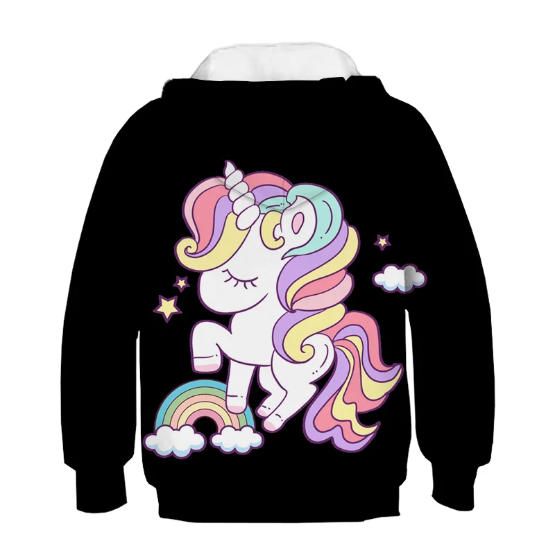 Толстовка с капюшоном для девочек, милый мультяшный единорог, Детск...