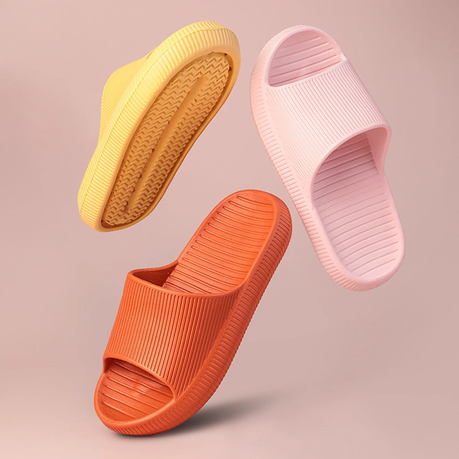Женские домашние сандалии на толстой подошве, мягкие Нескользящие Шлепанцы из ЭВА, плоская подошва, для гостиной, ванной, каблук 4 см