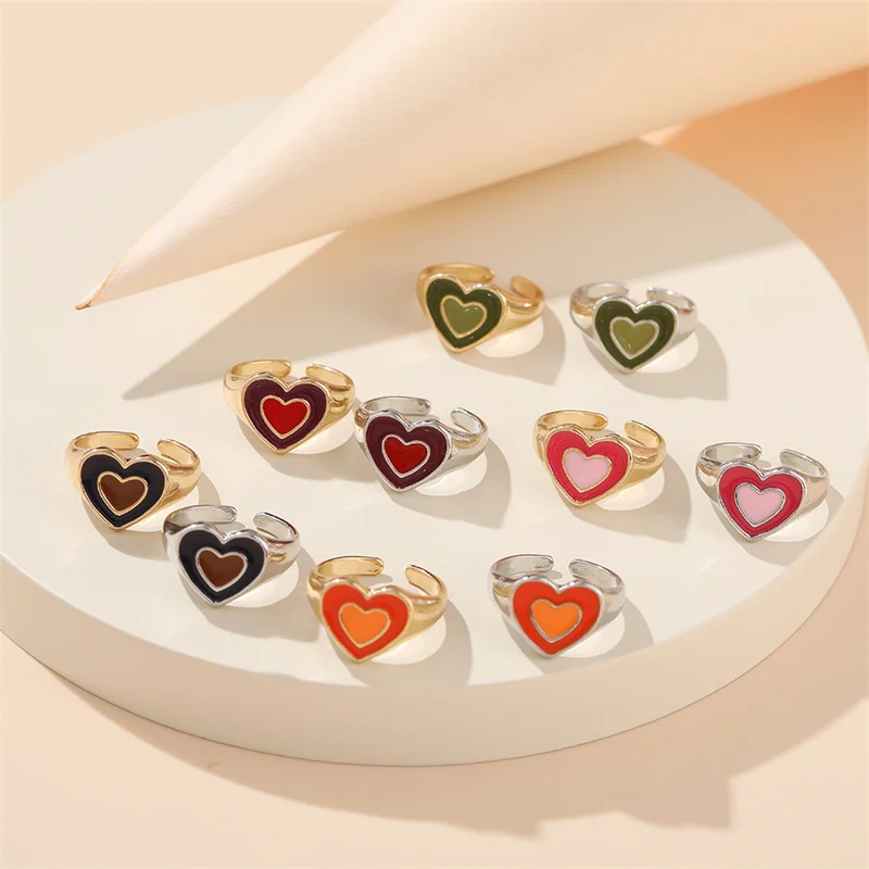 Y2K винтажное эмалированное кольцо в форме сердца, индивидуальные контрастные цветные открытые Регулируемые кольца, искусственное акриловое кольцо, 2021 новый тренд