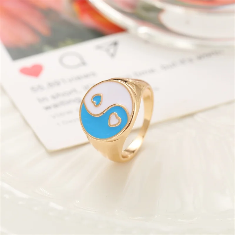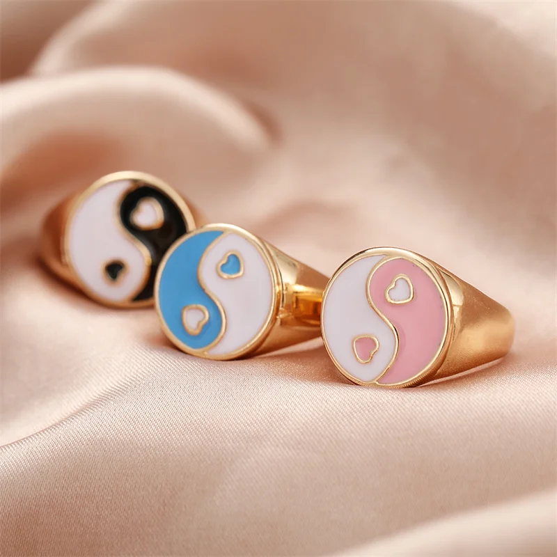 Модные эмалированные цветные яркие кольца в стиле Тай-Чи для женщин...