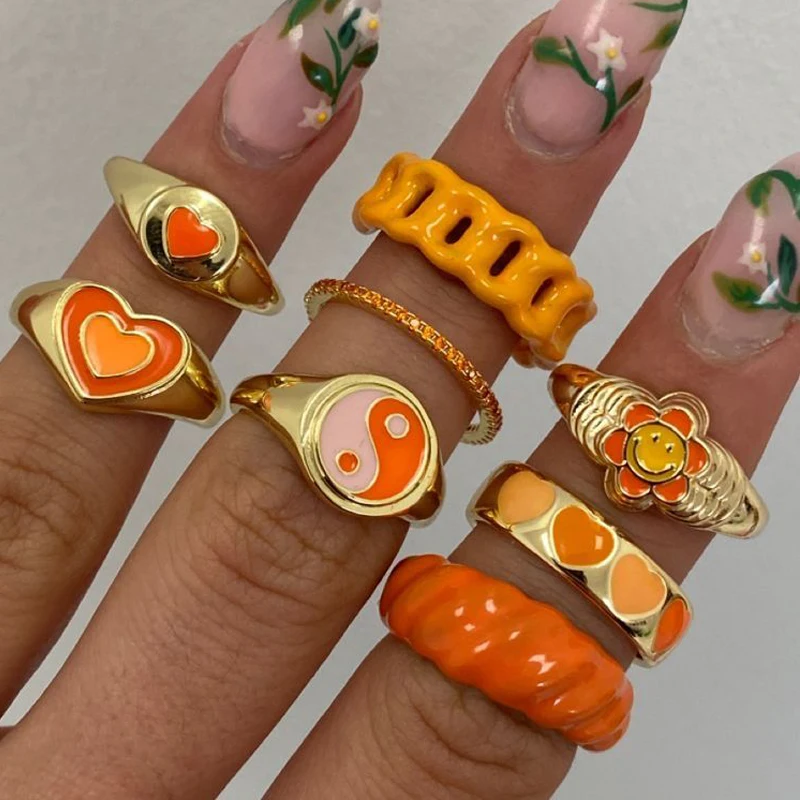 Винтажное эмалированное кольцо Y2K, регулируемое кольцо контрастных...
