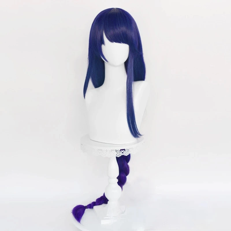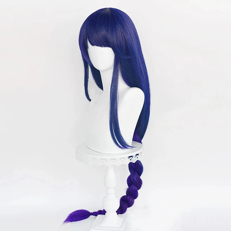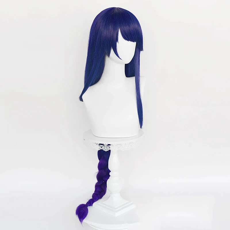 Парик для косплея Game Genshin ударопрочный Raiden Shogun, термостойкие синтетические волосы с длинной оплеткой синего, фиолетового цветов, аниме, с шапочкой