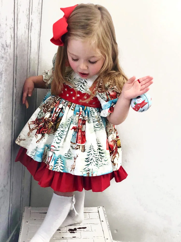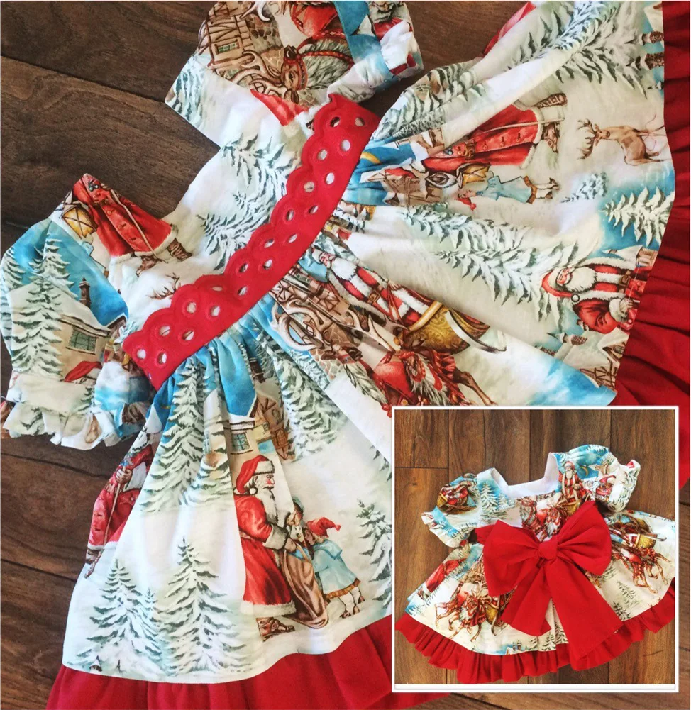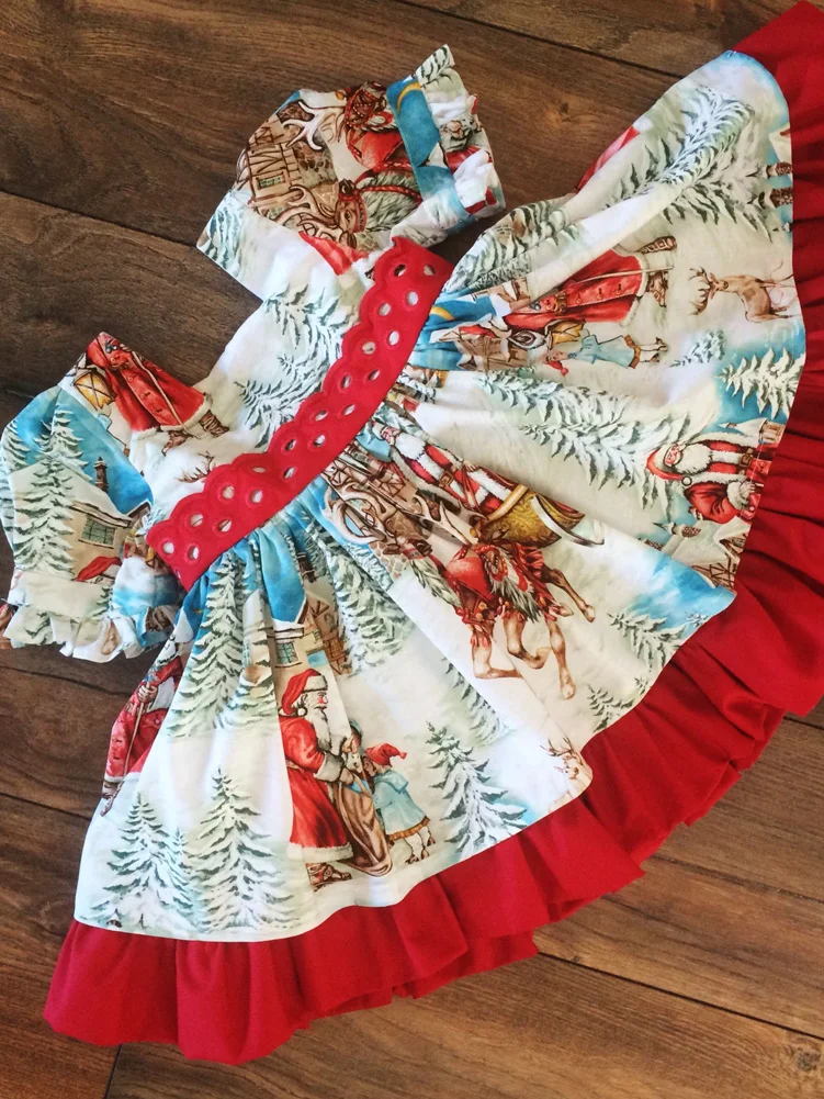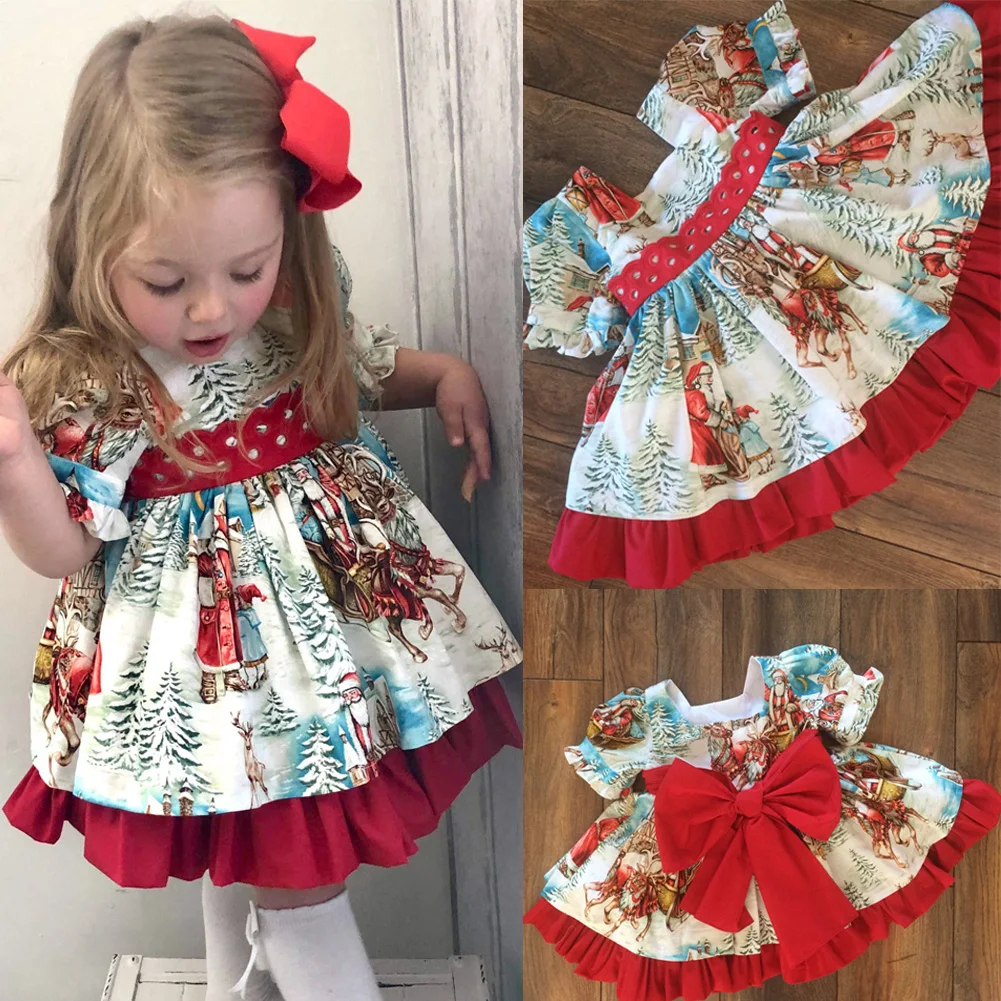 Рождественское платье для маленьких девочек, одежда для детей, яркий праздничный наряд для рождественской вечеринки, официальное платье с Санта-Клаусом, повязка для волос, наряд