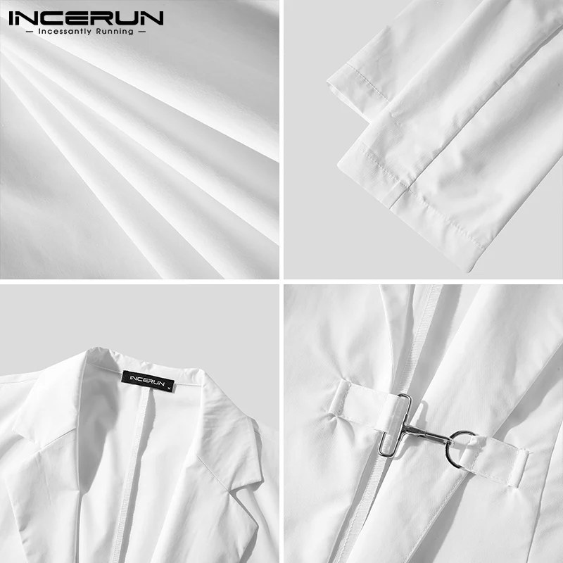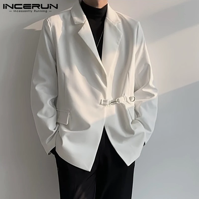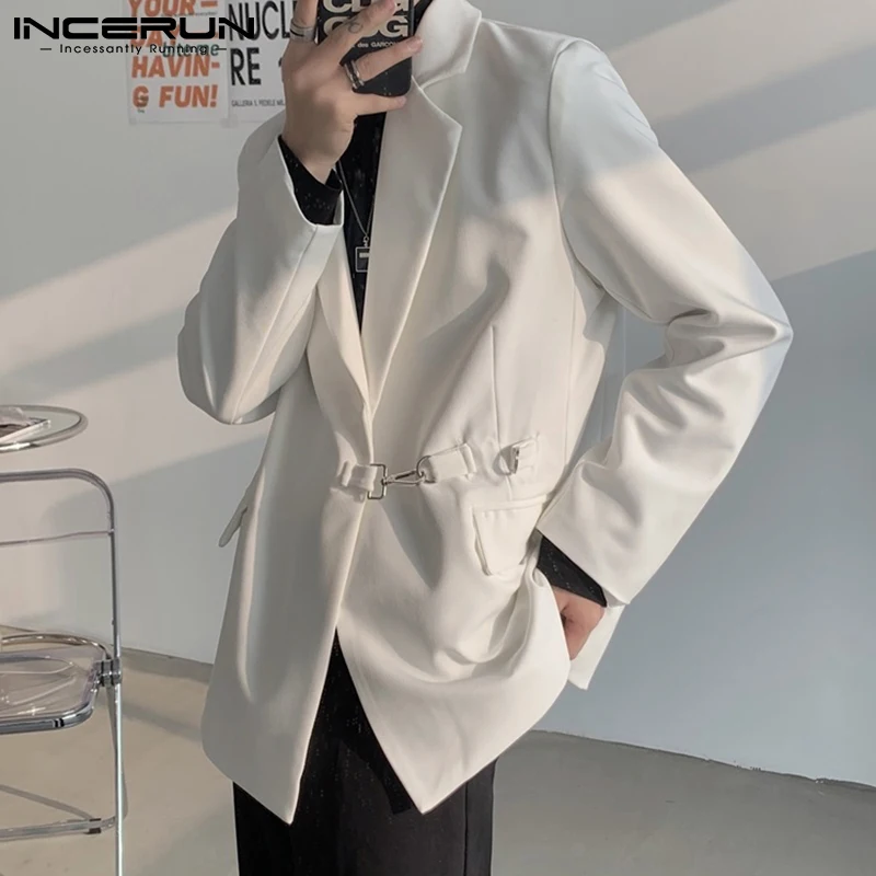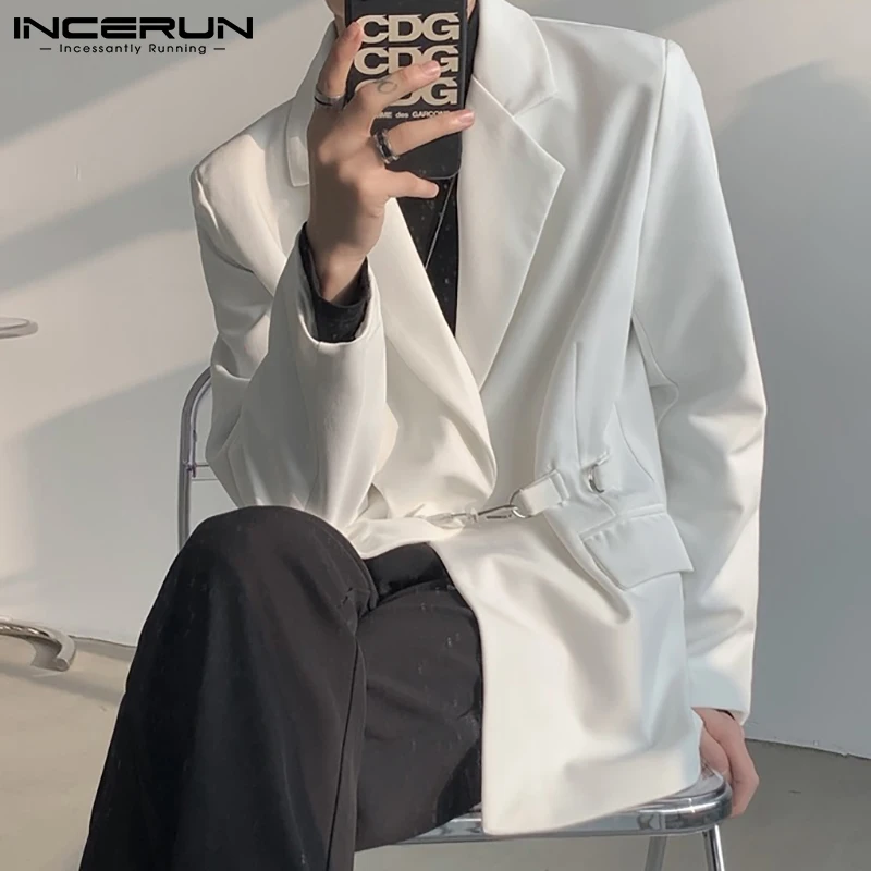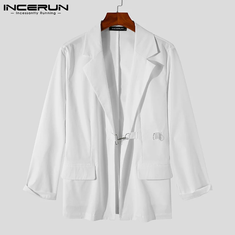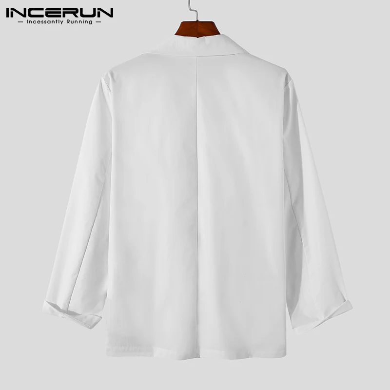 Модный мужской блейзер INCERUN, однотонный, с отложным воротником, 2022, с длинным рукавом, уличная одежда, повседневные костюмы, мужские стильные, элегантные, для отдыха, женские куртки
