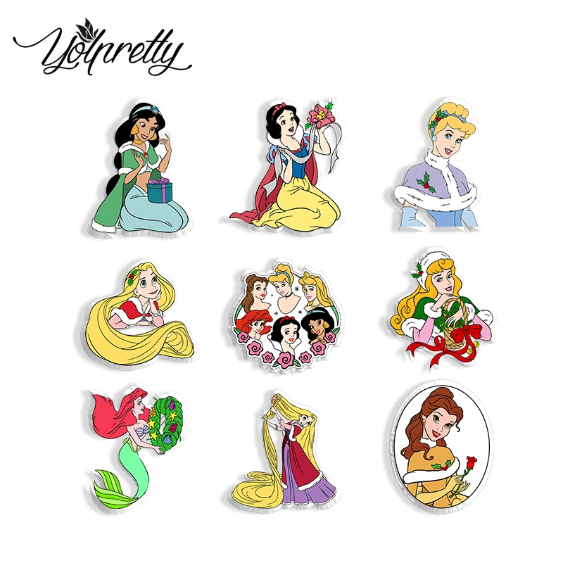 Броши из акриловой смолы Белоснежки с героями мультфильмов, Принцессы Диснея Белль Ариэль, 2021