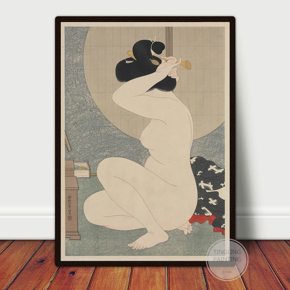 Художественная живопись японской женщины с невооруженным телом, холст, плакат, настенное искусство для отеля, кафе, бара, общежития