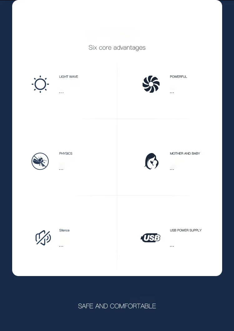 Шесть причин рекомендовать москитные убийцыСроки-4 схемы синхронизацииТихая работа низкий децибелСильный всасывающий Вихрь-физически убивает комаров и входит в пространство без комаровЭнергосбережение-низкое энергопотребление хороший эффектНесколько способов питания-usb-кабель для зарядки, более удобный в использовании в различных условияхУдобно носить с собой-светильник от комаров и маленький, можно носить с собой в автомобиле или на улице