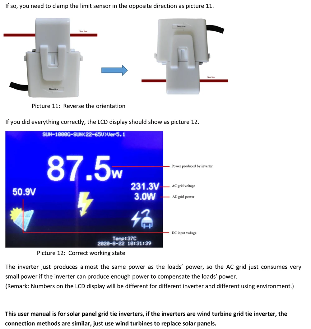 3,1 эта установка не требует дополнительного модуля ограничителя, установка намного проще. Прижмите кабель датчика тока к горячему проводу для измерения тока, внутренний ограничитель автоматически обнаружит мощность нагрузки и контролирует выходную мощность инвертора, избыточная мощность будет хорошо контролироваться.