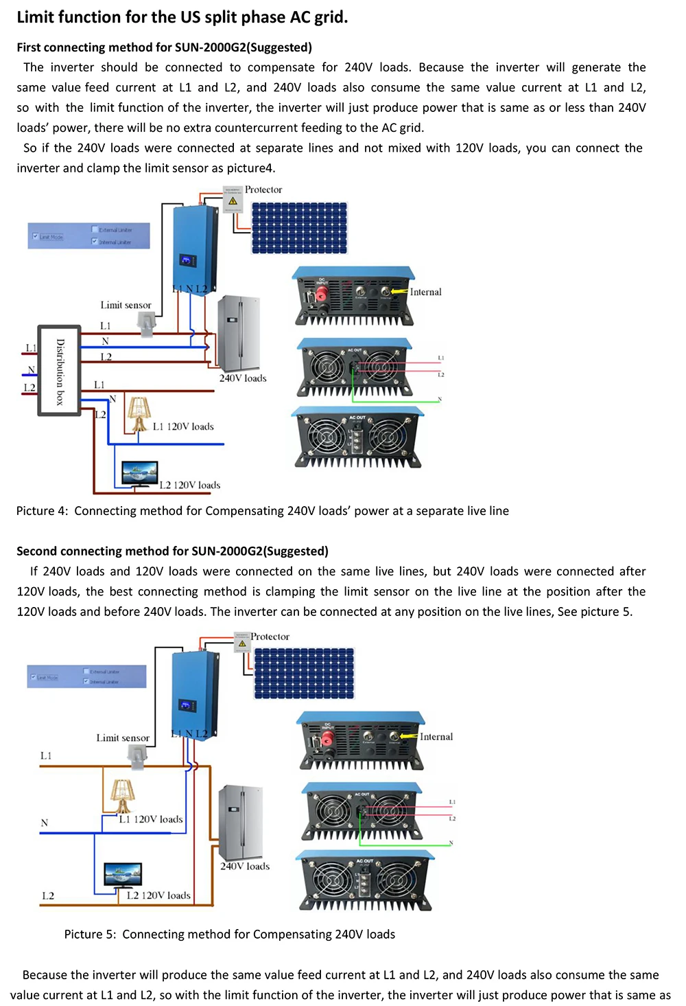 2,2 сердцем сетки галстук инвертор с ограничителем является ограничитель модуль (лм). LM непрерывно проверяет мощность, необходимую нагрузке, через датчик тока, подключенный После главного выключателя. Затем LM обрабатывает сигнал. Затем он отправляет сигнал на сетевой инвертор, сколько мощности доставит к нагрузке в режиме реального времени.