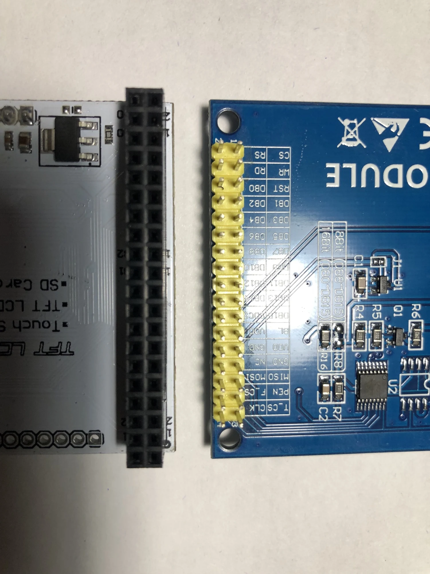 Потому что TFT01 ЖК-дисплей работает в 3,3 V напряжения, таким образом, не может быть использован непосредственно на верхней части материнскими платами стандарта, таким образом, для того, чтобы сделать TFT01 ЖК-дисплей