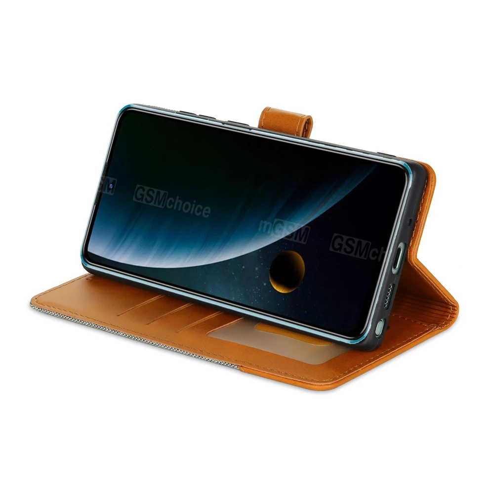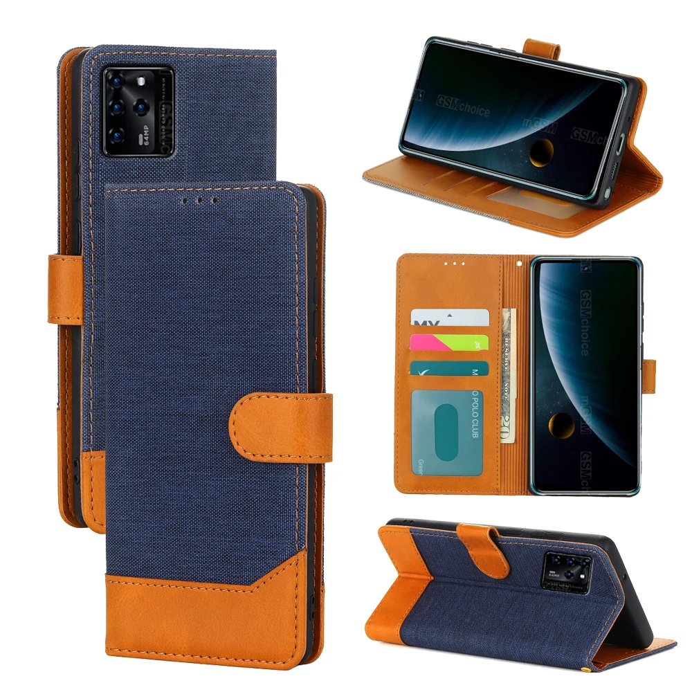 Чехол-книжка для ZTE Blade V30, кожаный, с тканевым узором