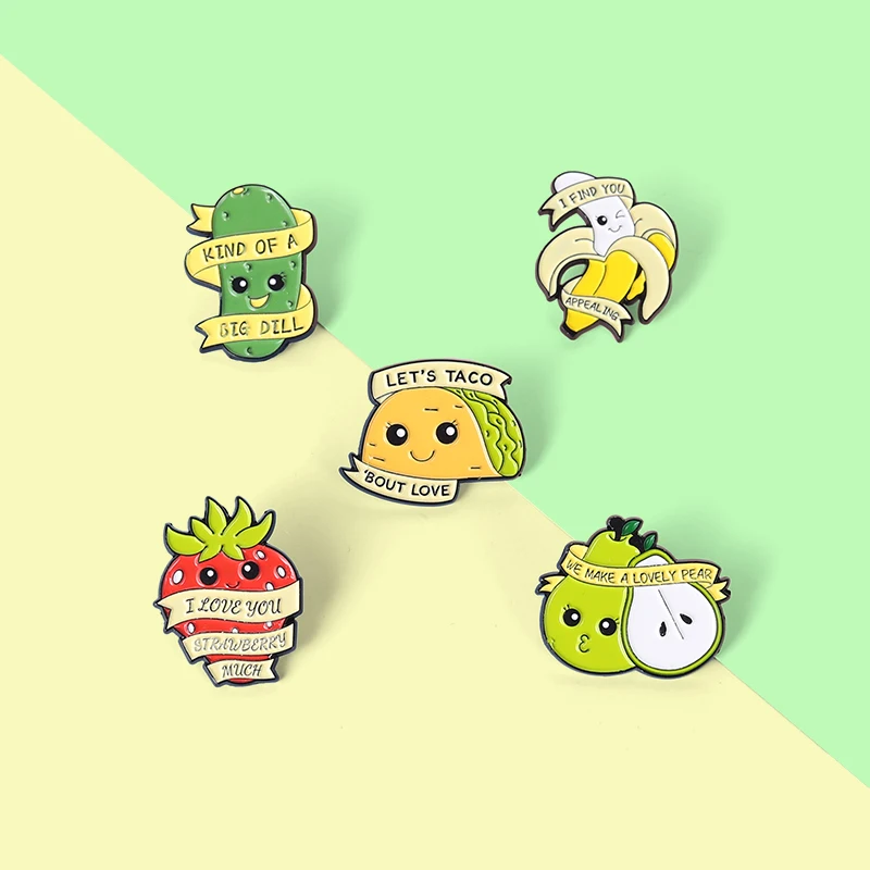 Эмалированные булавки с фруктами и едой, Мультяшные Броши с тако, клубникой, огурцом, значок, украшение на рюкзак, шапочки, подарок для женщин и мужчин, ювелирное изделие