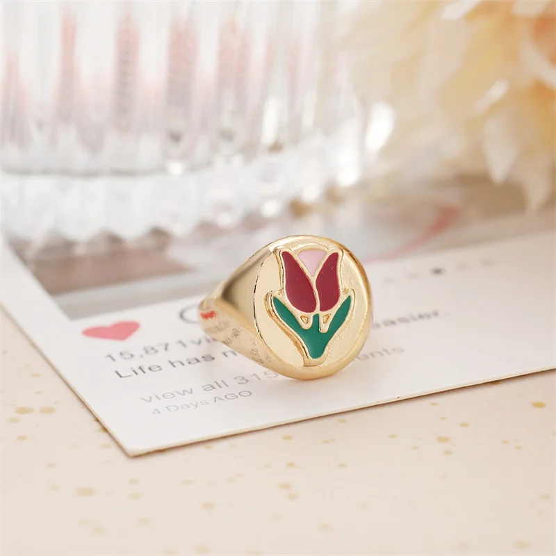 Модное кольцо с глазурованными маргаритками и тюльпаном, Женское ко...