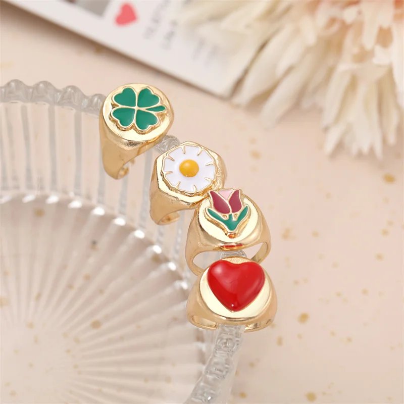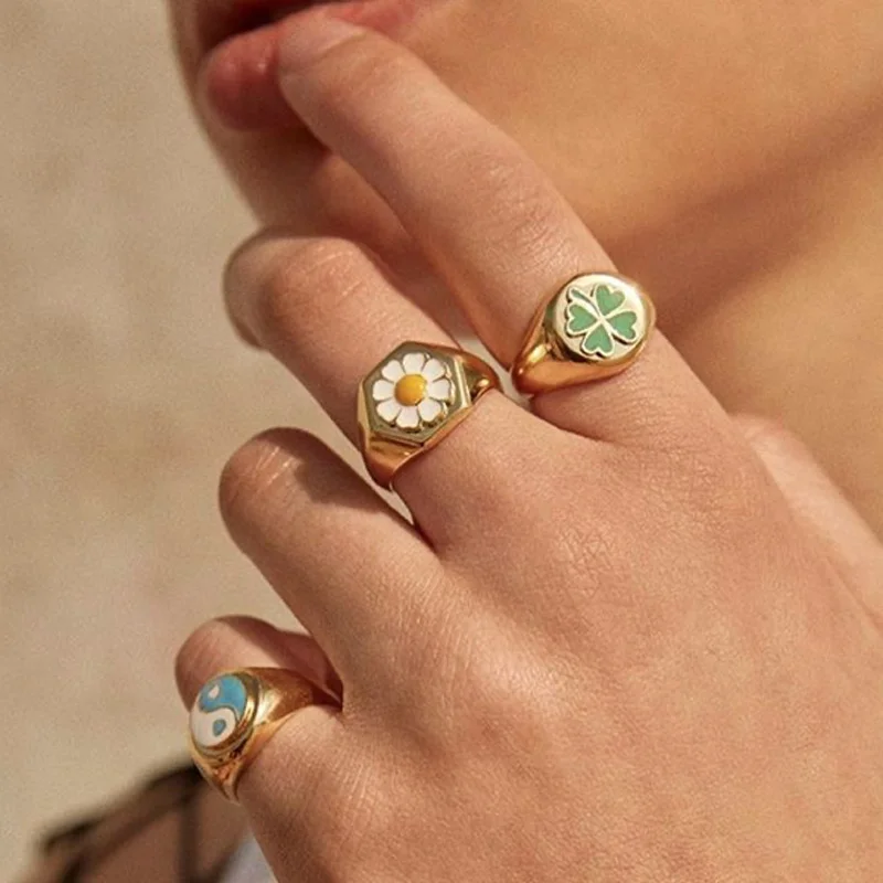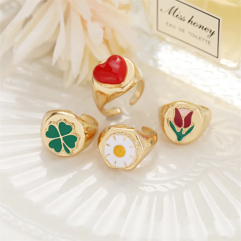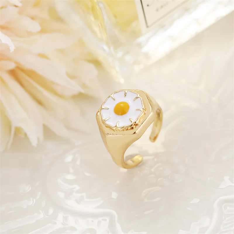 Эмалированные кольца с маргариткой в стиле ретро Y2K яркие металлические кольца ярких цветов в стиле Тай-Чи для женщин винтажные кольца с капельной пропиткой ювелирные изделия 2021 новые модные
