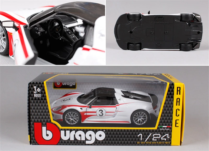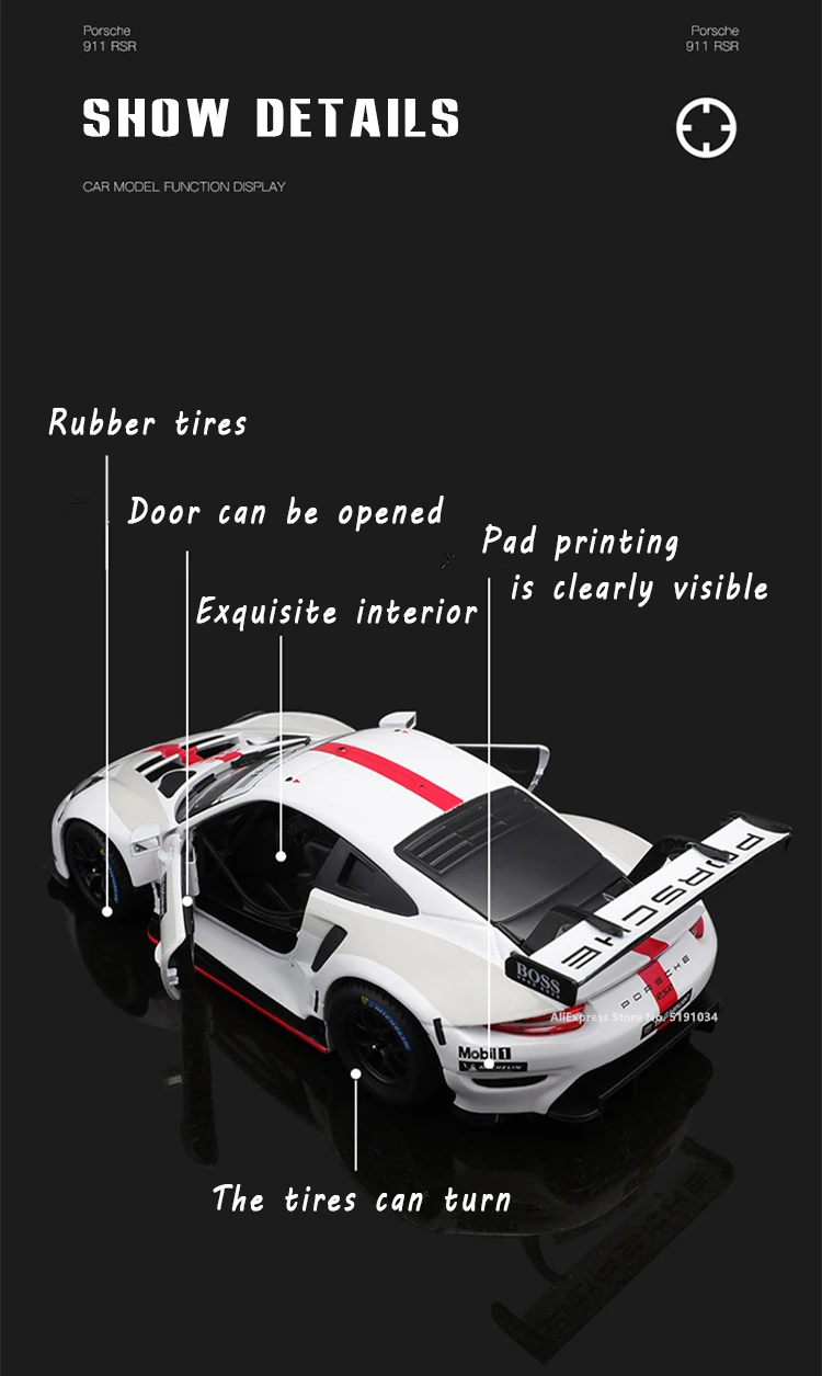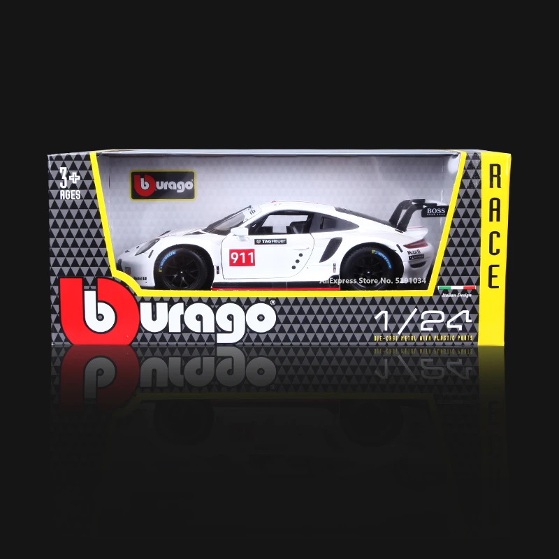 Модель гоночного автомобиля из сплава Bburago 1:24 Porsche 911 RSR GT, имитация украшения, коллекционная Подарочная игрушка, подарок на день рождения
