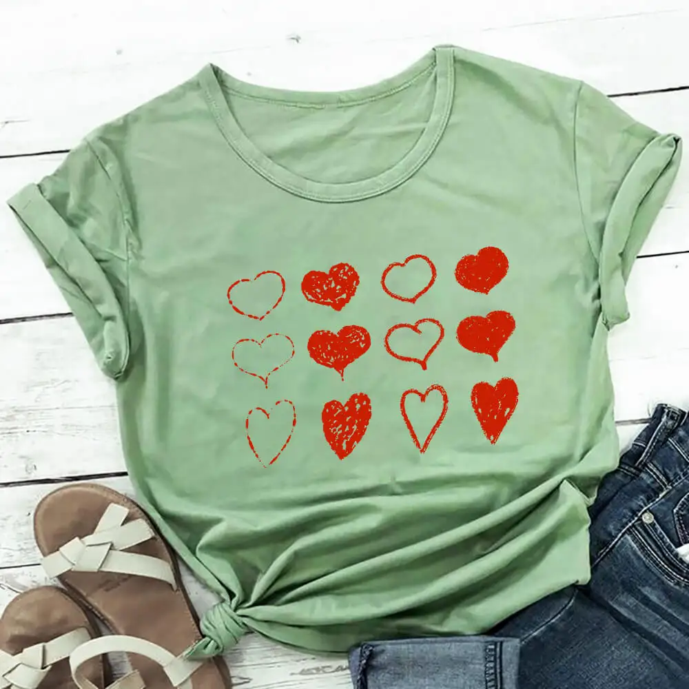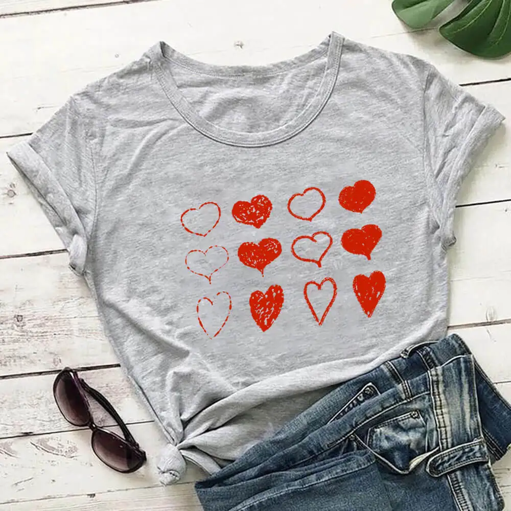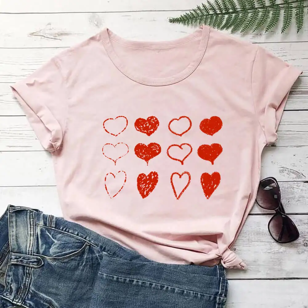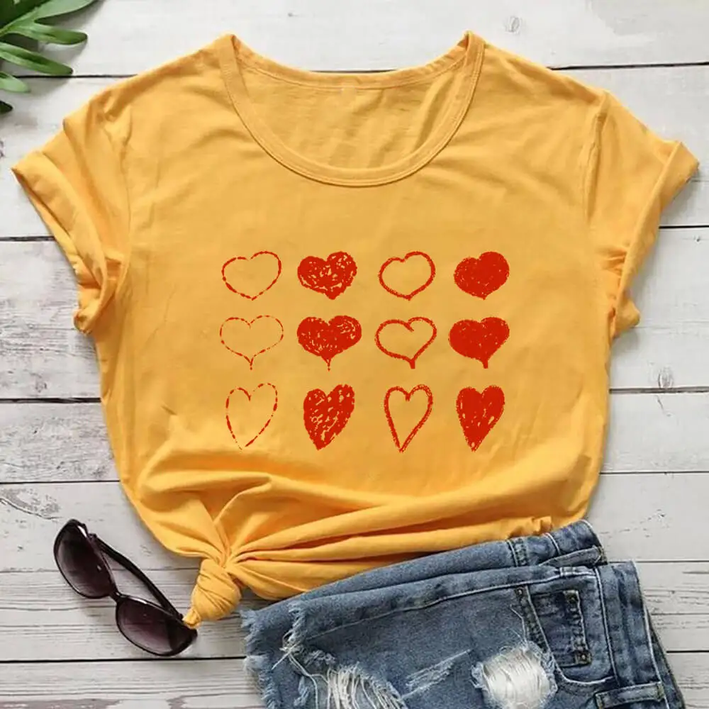 Женская футболка из 100% хлопка, с принтом в виде сердца