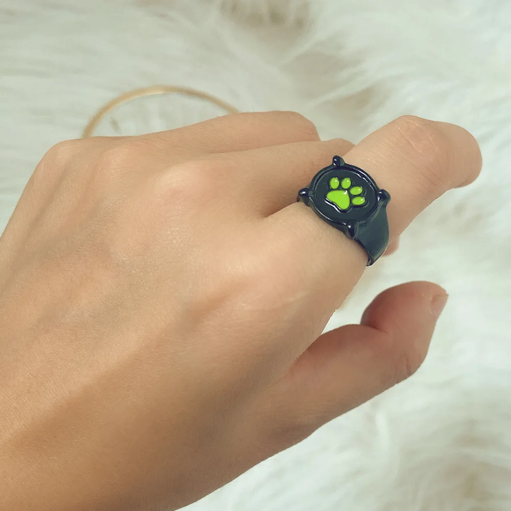 Модная черная кошка Нуар Кольцо Аниме-кольцо для костюмированной вечеринки для женщин и мужчин, для детей, одежда для сна, подарок на Хэллоуин кольца милые ювелирные изделия Cat зеленого цвета с принтом «кошачий коготь» кольцо