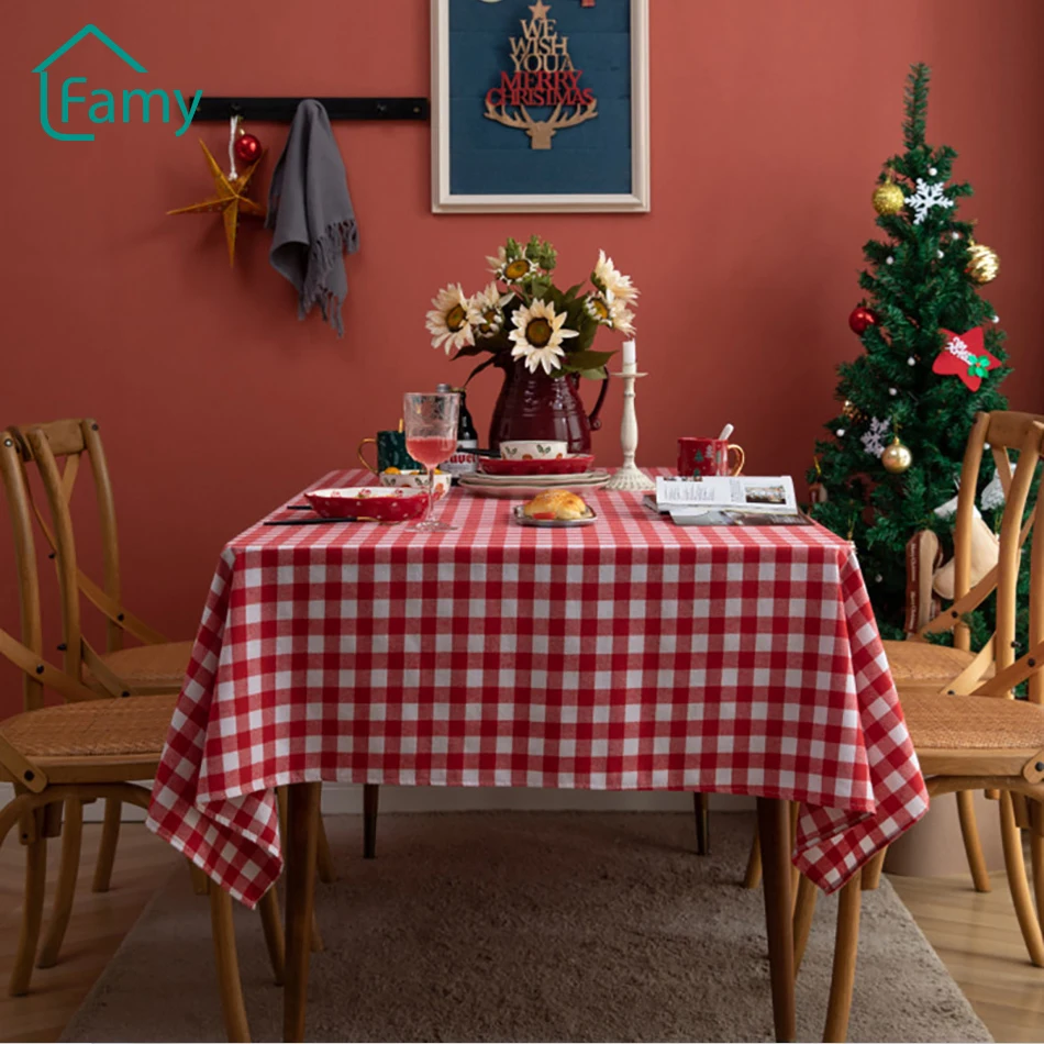 Скатерть для стола Рождественская Декоративная скатерть Новогодняя Красная белая клетчатая хлопковая льняная прямоугольная барбекю украшение Вечерние