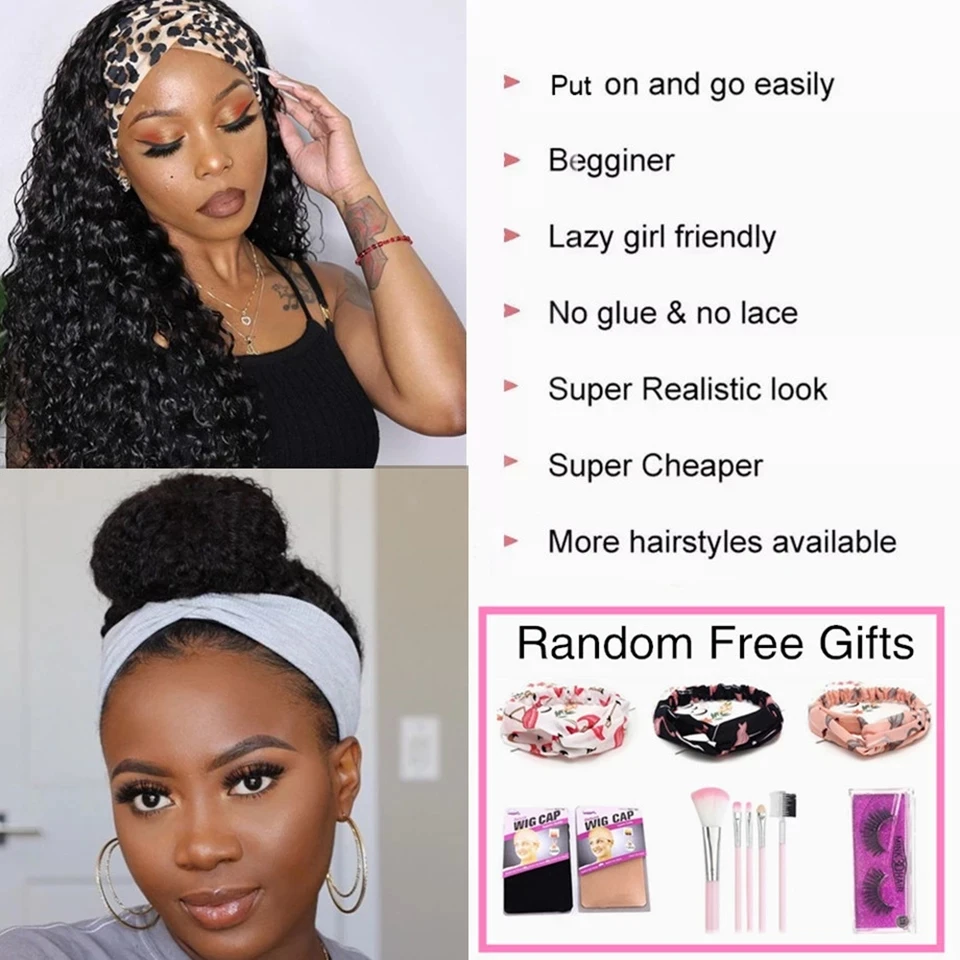 Малазийские человеческие волосы, повязка на голову, парики для черных женщин, кудрявые прямые человеческие волосы, парик без клея, полный машинный парик с повязкой на голову