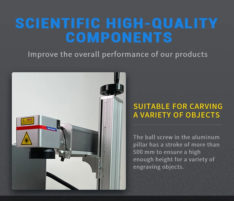 Алюминиевая стойка с шариковыми винтами внутри более 500 мм на расстояние в пути, чтобы обеспечить достаточную высоту для использования для многих видов гравировальных объектов.