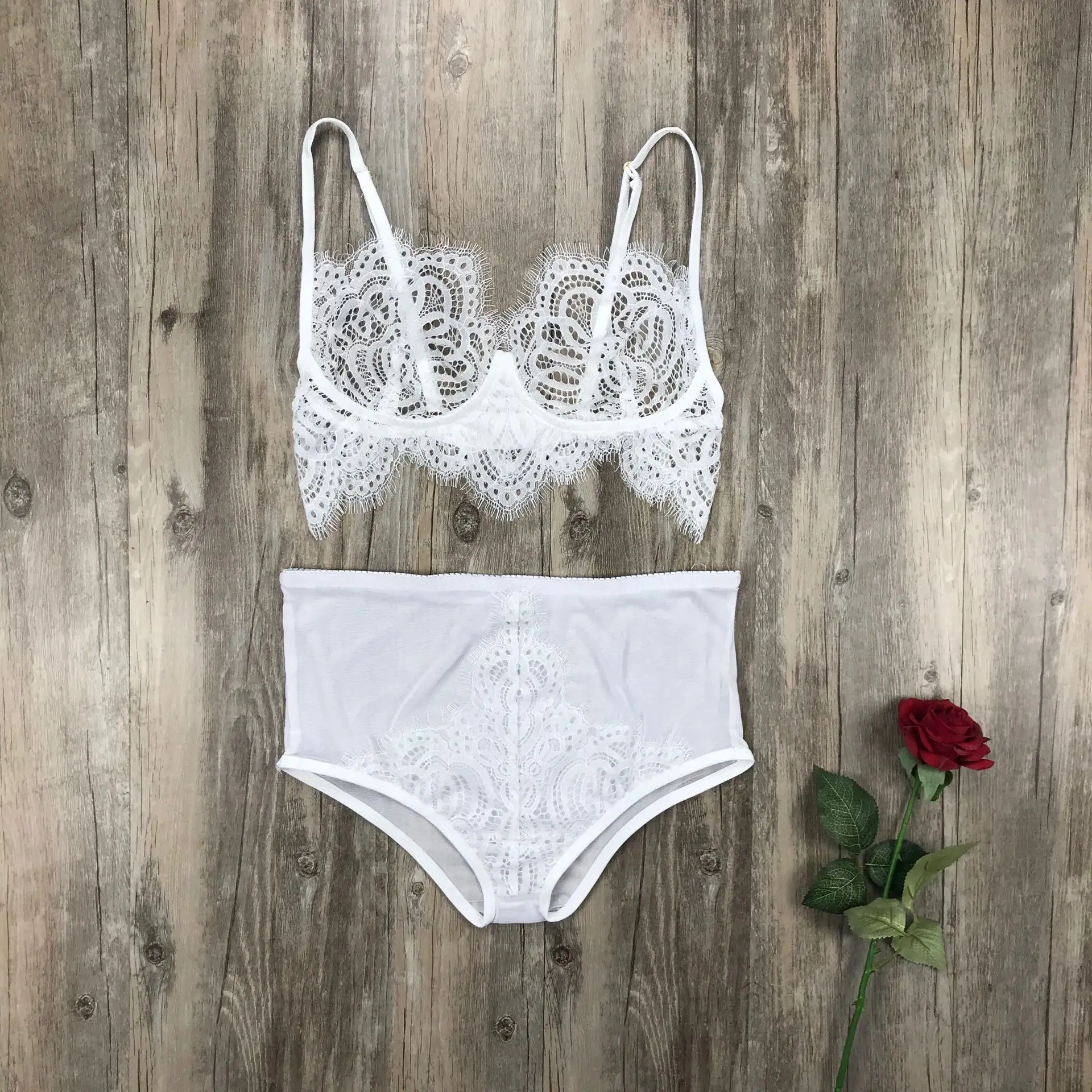 Комплект женского кружевного прозрачного нижнего белья, бюстгальтер пуш-ап, трусы с высокой талией