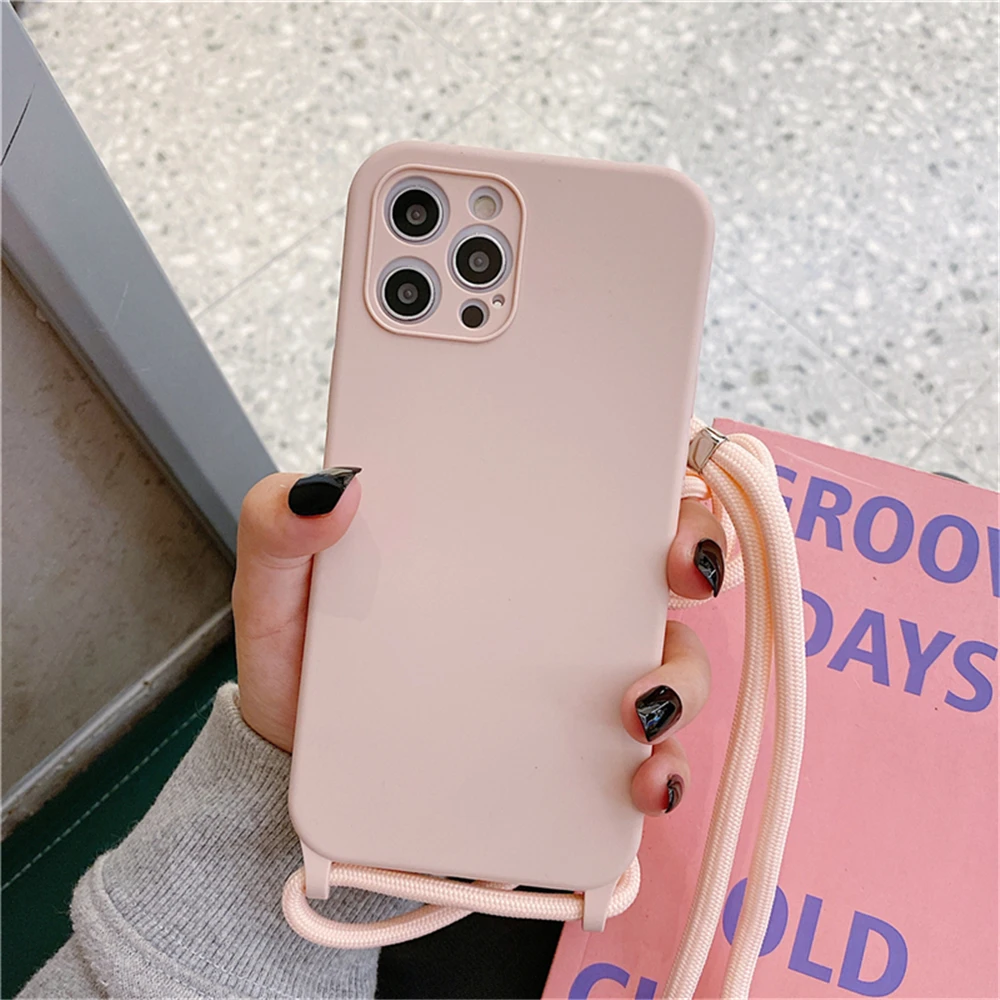 Оригинальные чехлы из жидкого силикона для iPhone 12 11 13 Pro Max Mini X XR XS 7 8 Plus SE2, мягкий чехол с ремешком через плечо и ремешком