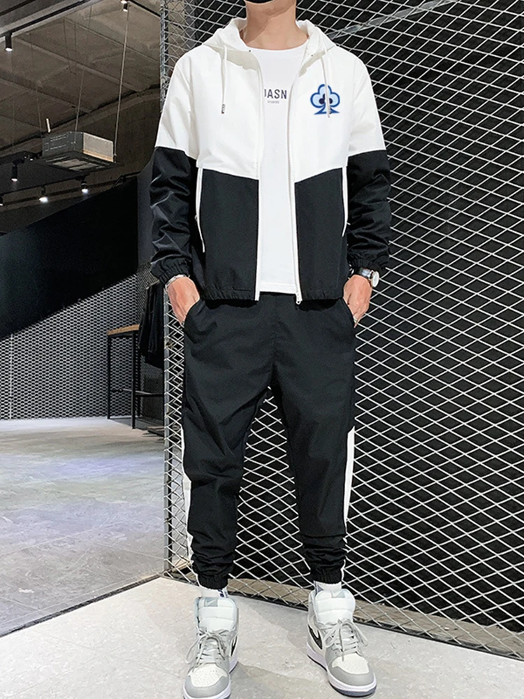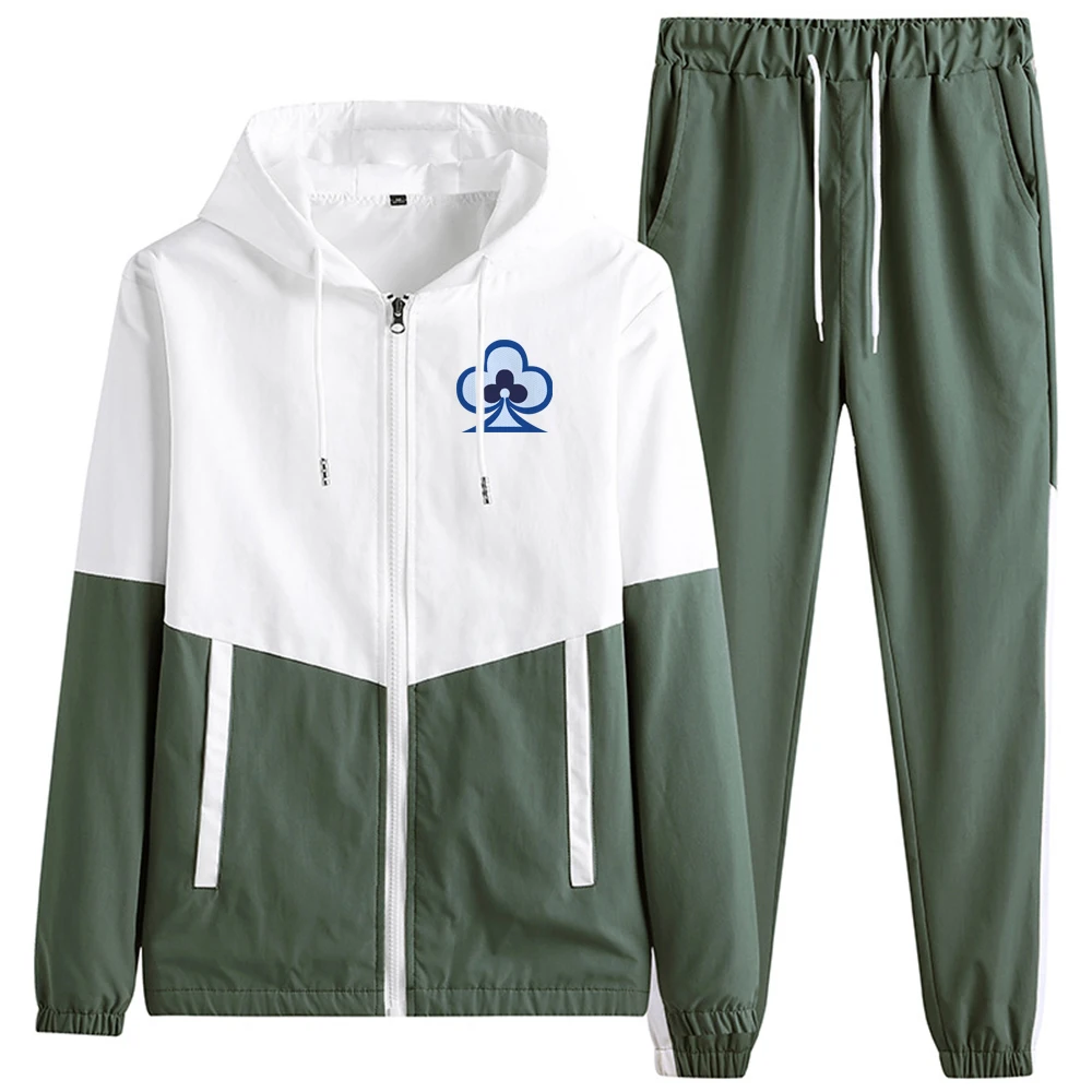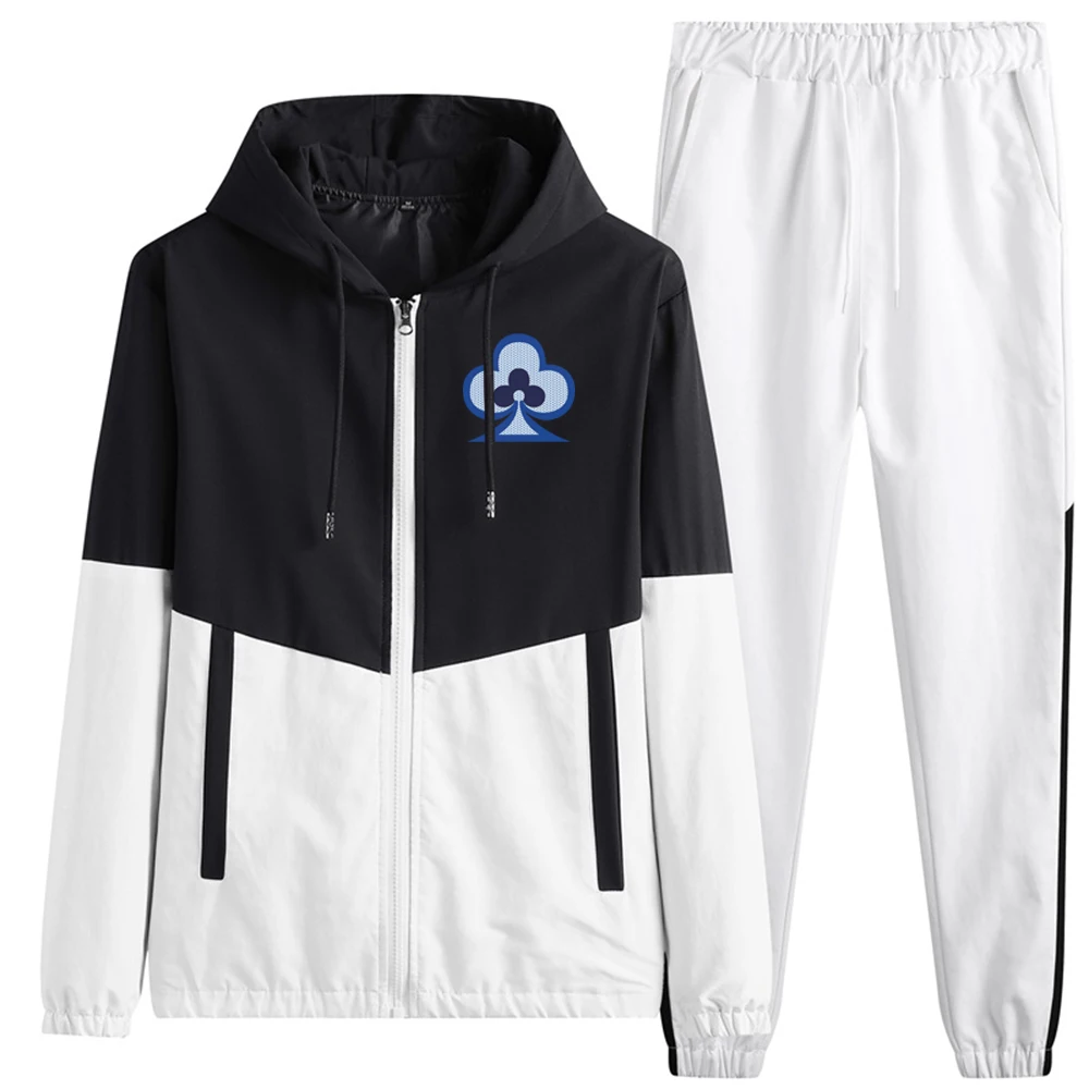 Мужской спортивный костюм в стиле хип-хоп, темно-синяя Повседневная Толстовка с капюшоном и брюками на молнии, спортивная одежда, 2021