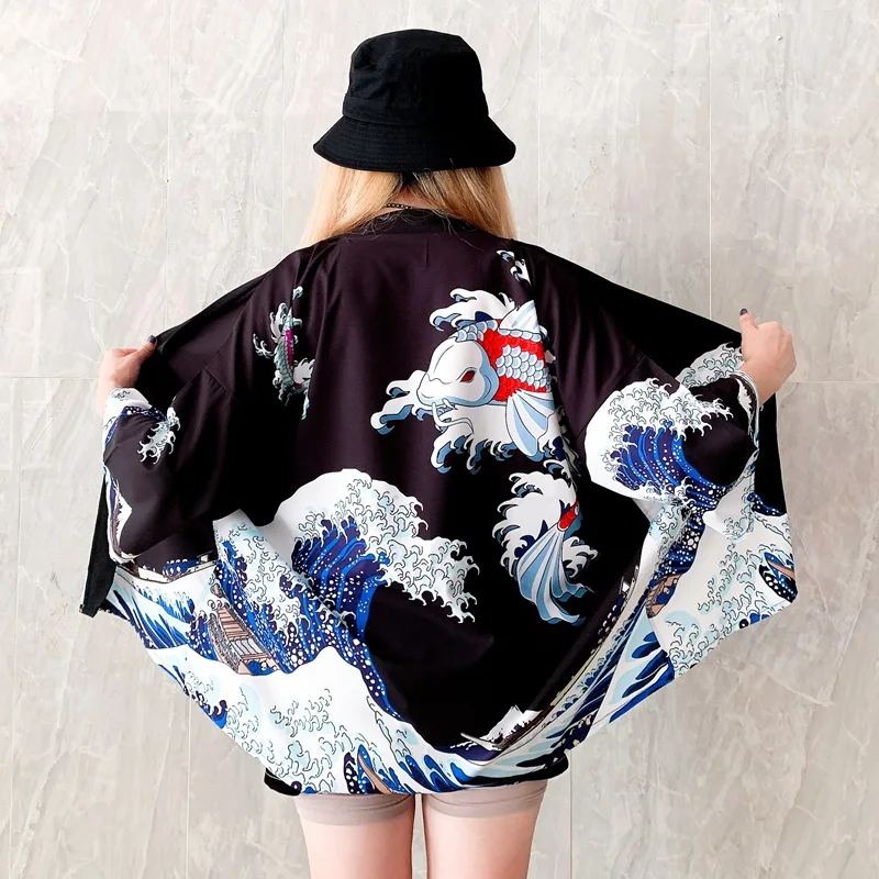 Кимоно женское пляжное в японском стиле, юката, Самурай, хаори, кардиган, рубашка, одежда для косплея, лето