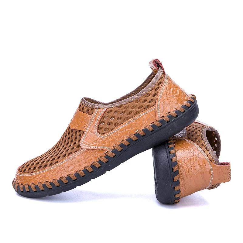 Мокасины мужские из натуральной кожи, дышащие сетчатые, мягкие улич...