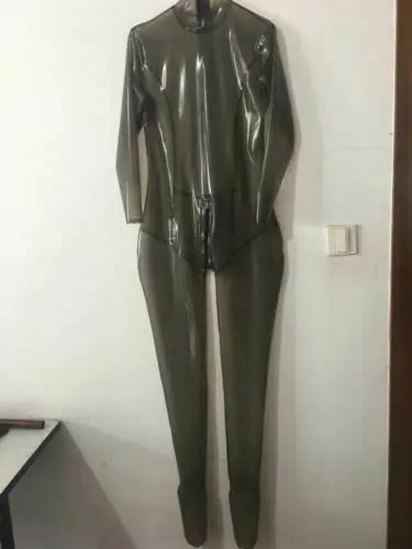 100% латекс Резиновый облегающий костюм боди прозрачный и черный Co...