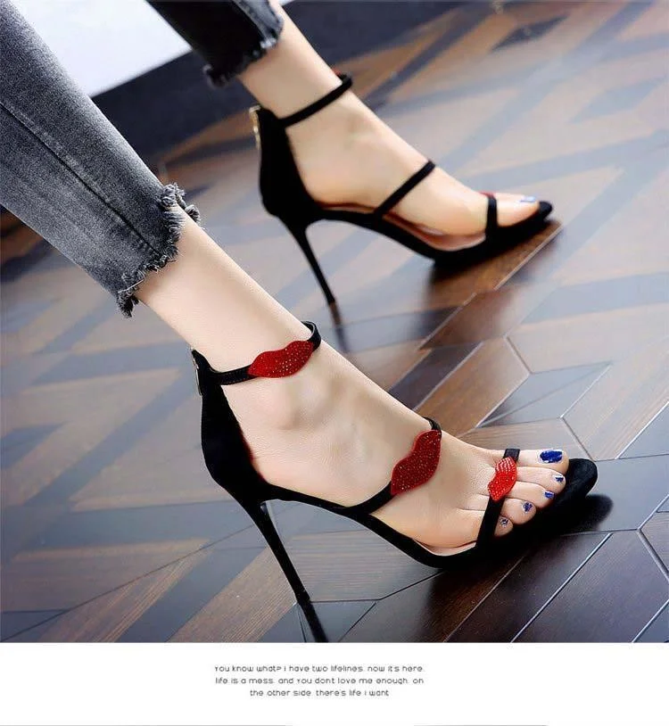 Туфли женские на каблуке, красные кожаные сандалии, летние шлепанцы...
