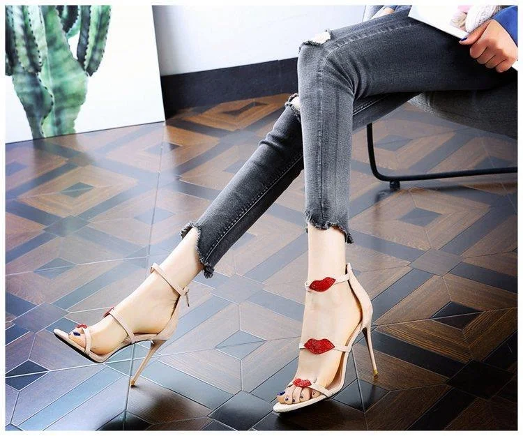 Туфли женские высокие, сандалии для девушек, красные, весна-лето