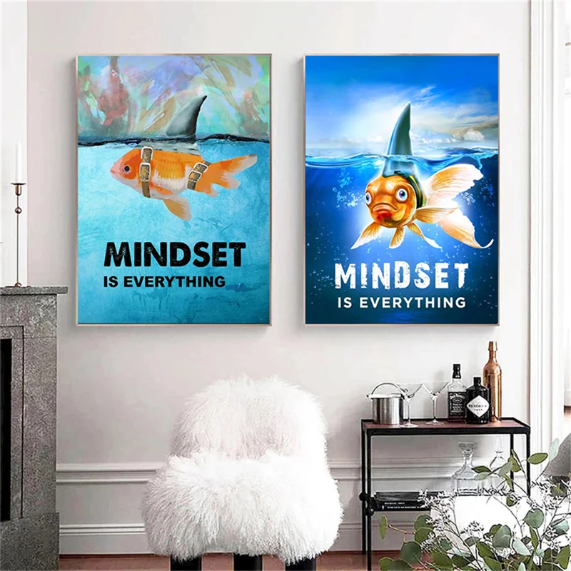 Современный постер на холсте с изображением золотой рыбки-это все мотивация