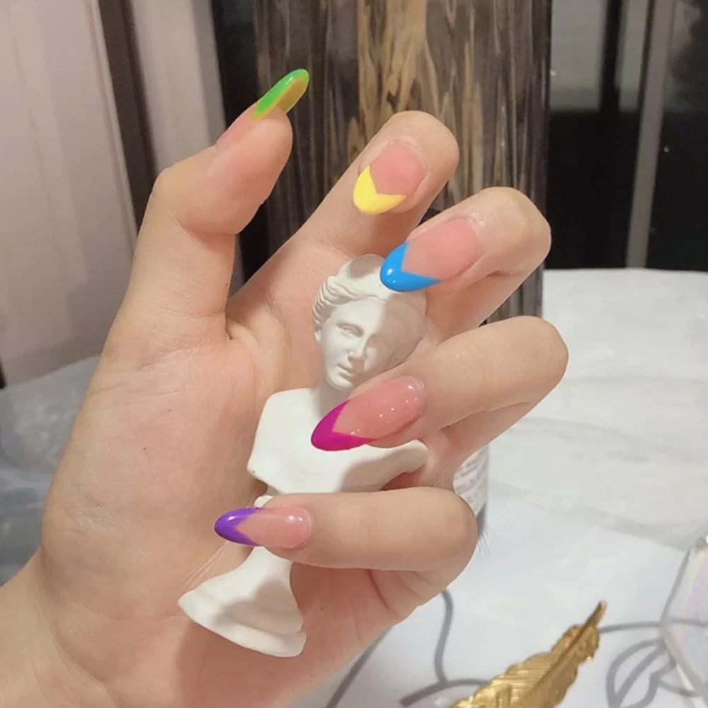 Голографические накладные ногти с серебряным блеском нажимные накладные ногти повседневная одежда Съемные телесные розовые женские Искусственные ногти с полным покрытием балерины