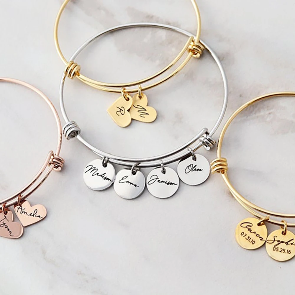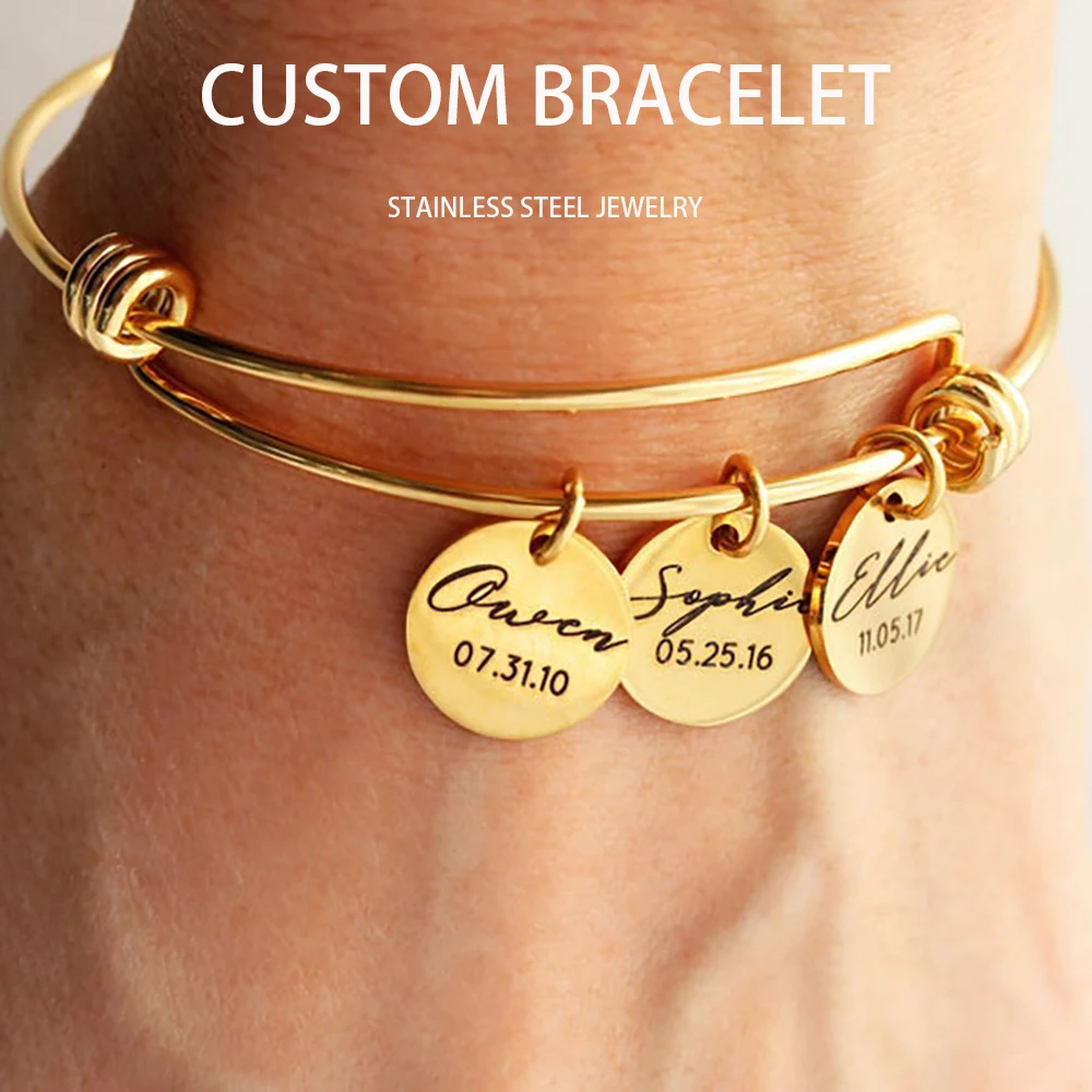 Браслет с именем Mini-World 1-3, персонализированный Регулируемый Шарм-браслет, милая круглая подвеска Love, ювелирные изделия из нержавеющей стали для матерей