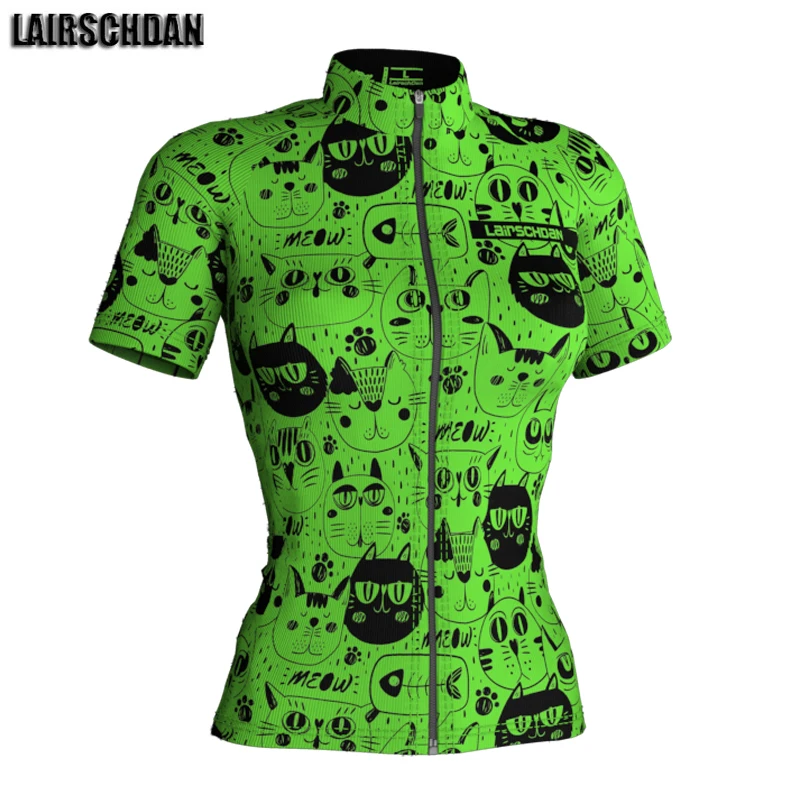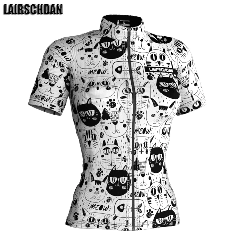 Футболка женская велосипедная с коротким рукавом и принтом кошек